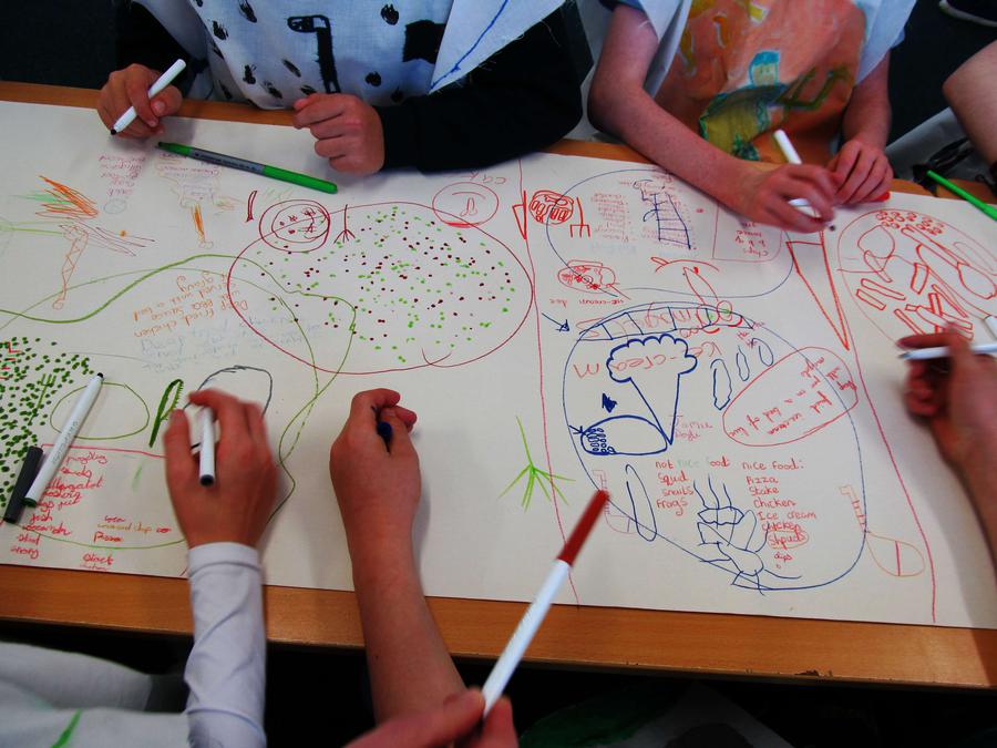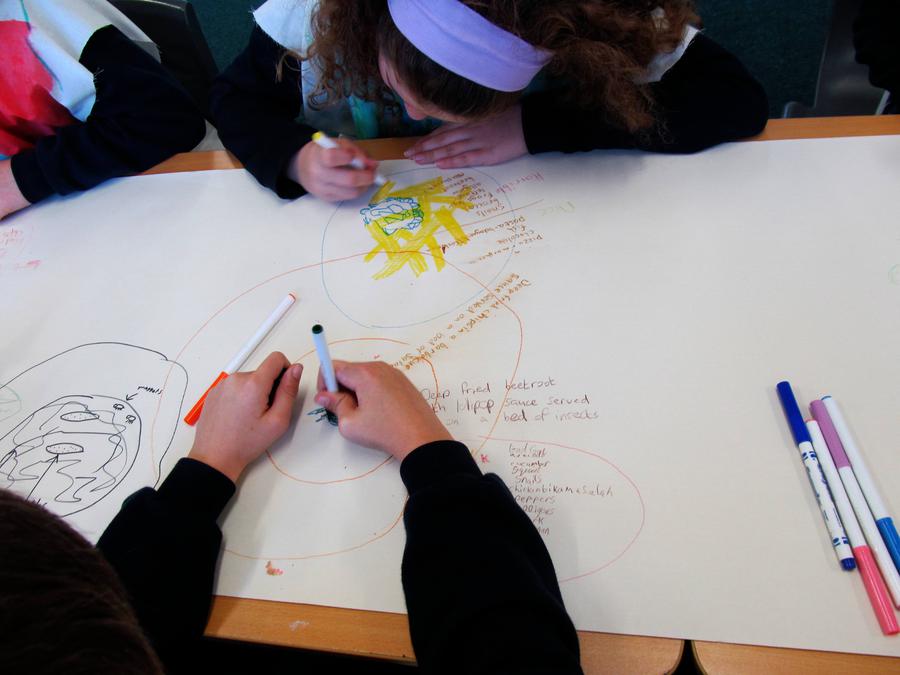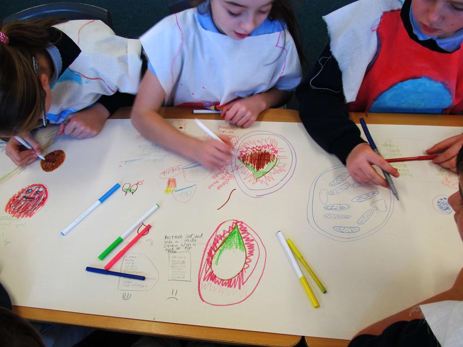 In school we began by talking about food, delicious and disgusting food imaginging a feast we could share together with many delicious and disgusting dishes.