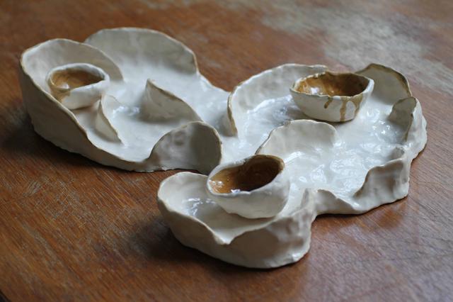 Companions are made by 2 people and they are part of a larger project, initiated by Clare Breen called the Breadfellows' Chats. In Breadfellows' Chats two people come together in conversation about art. This conversation inevitably touches every aspect of life. During this conversation they co-construct a ceramic object whose form is directly negotiated during this conversation - two sets of hands working together construct an object that holds within it the promise of a second meeting – to fulfil their practical funcion. The conversation that took place around the production of these objects is as important as the object itself. These objects are made by two people and are both artworks and functional tableware.