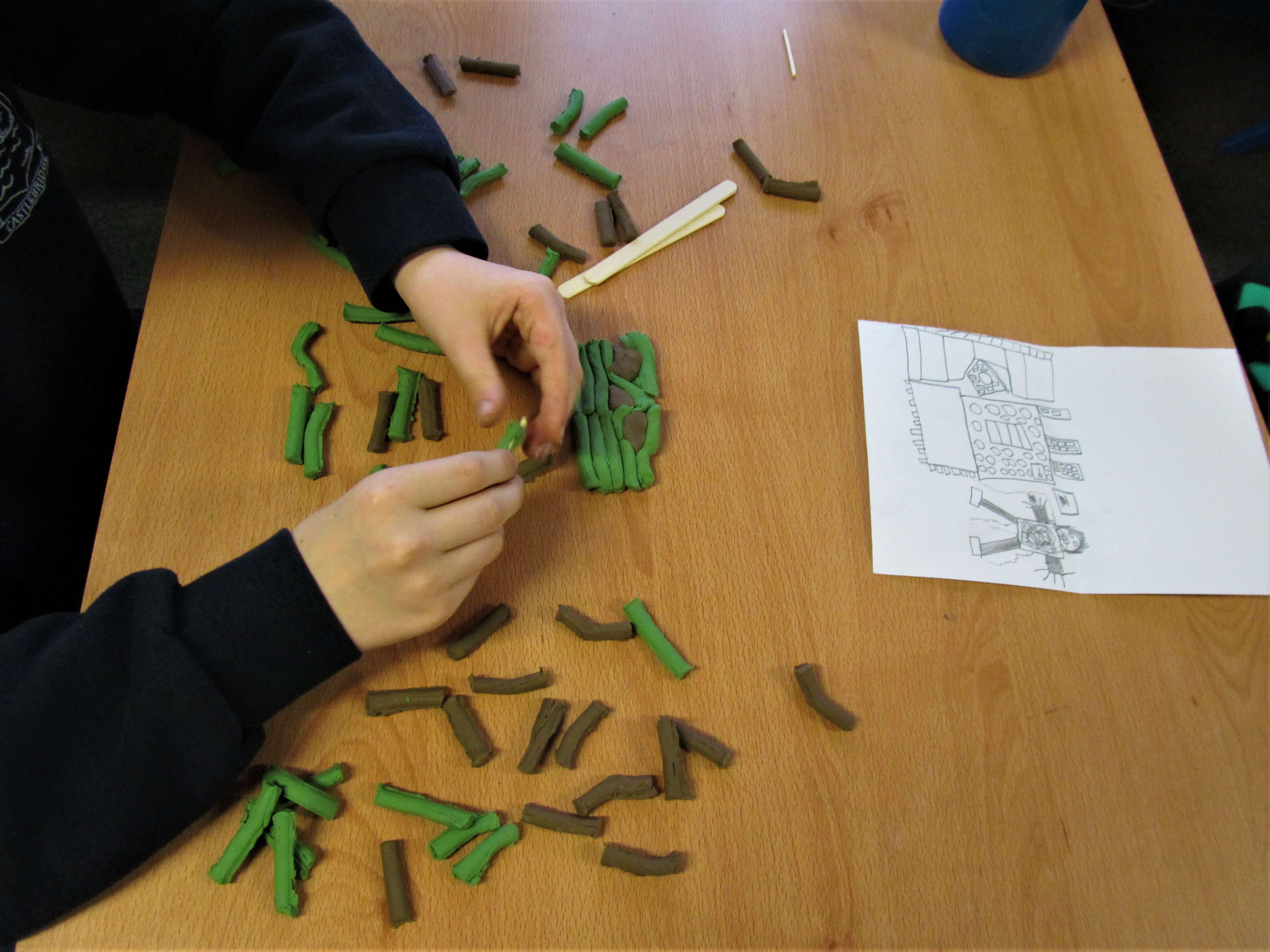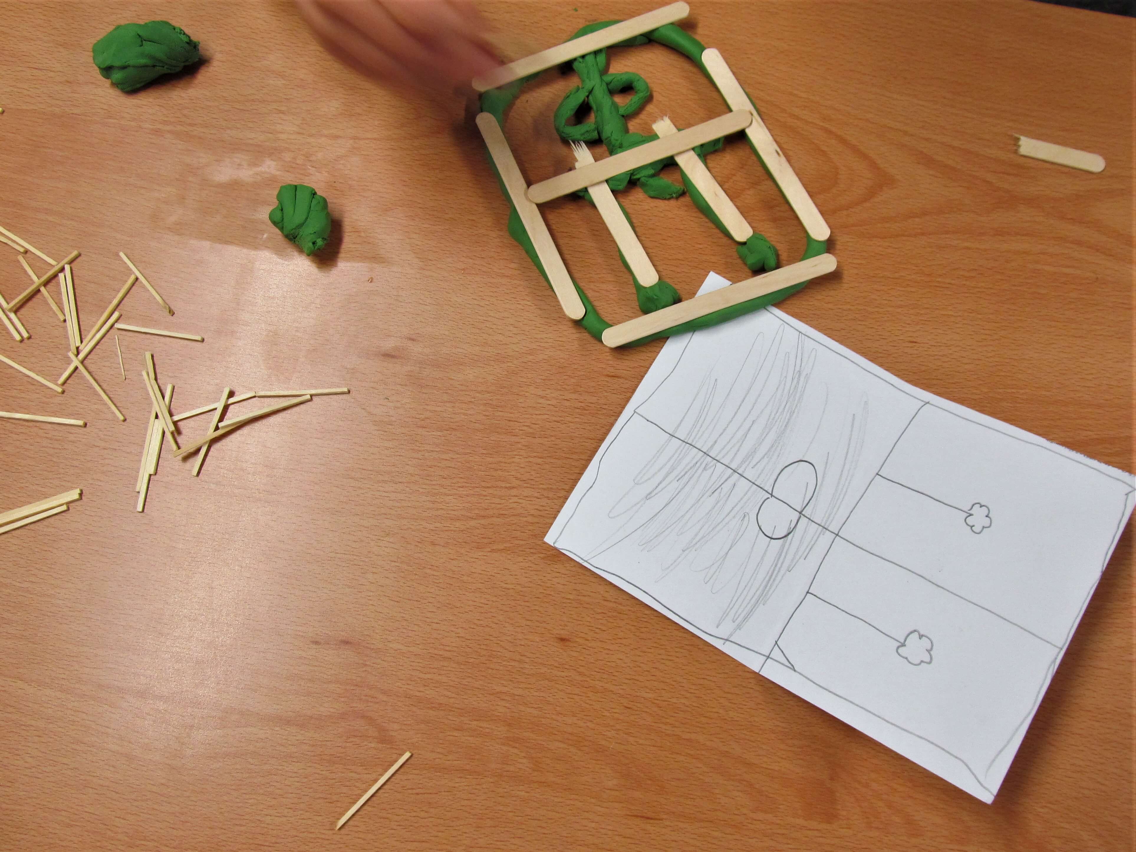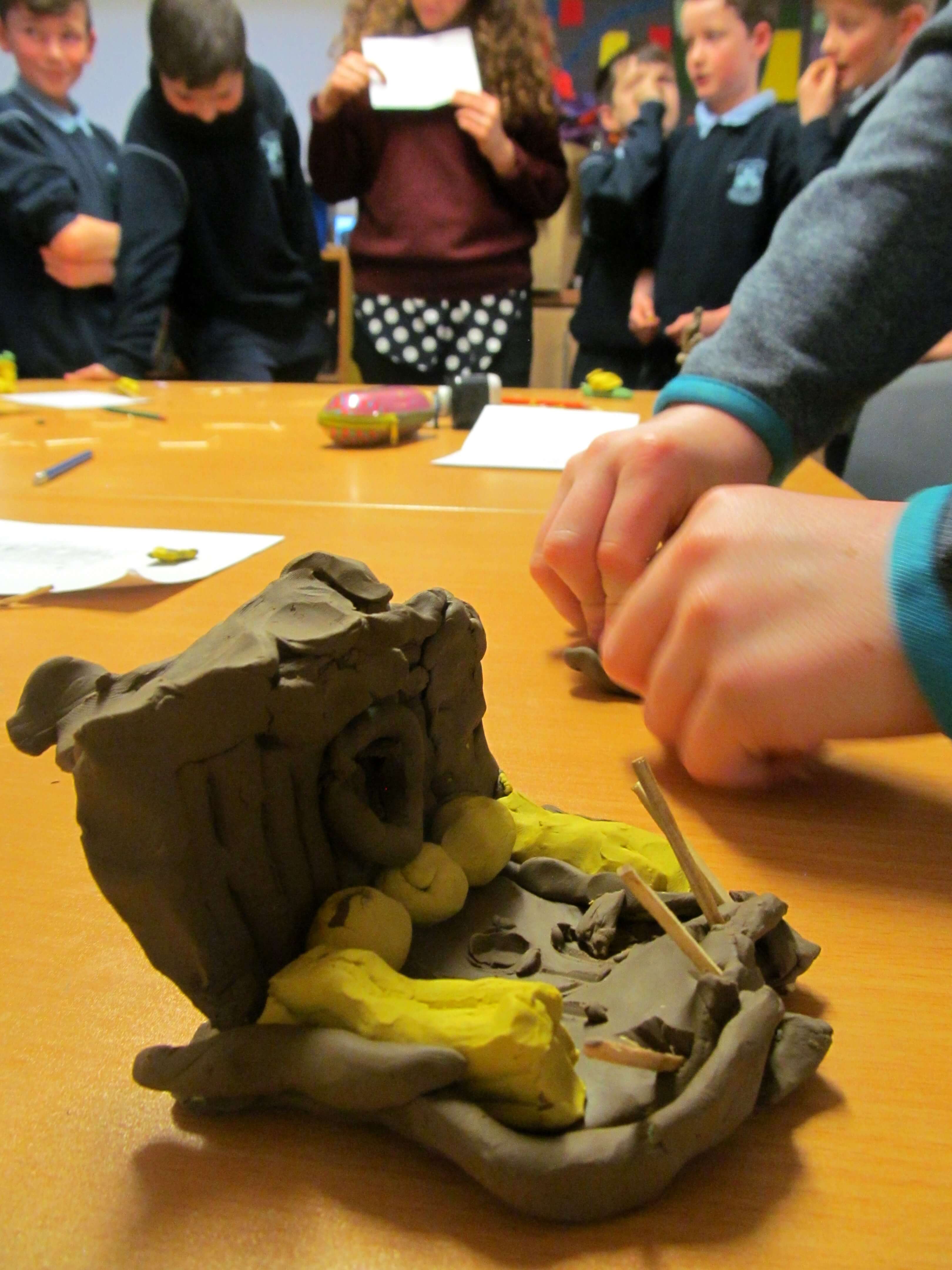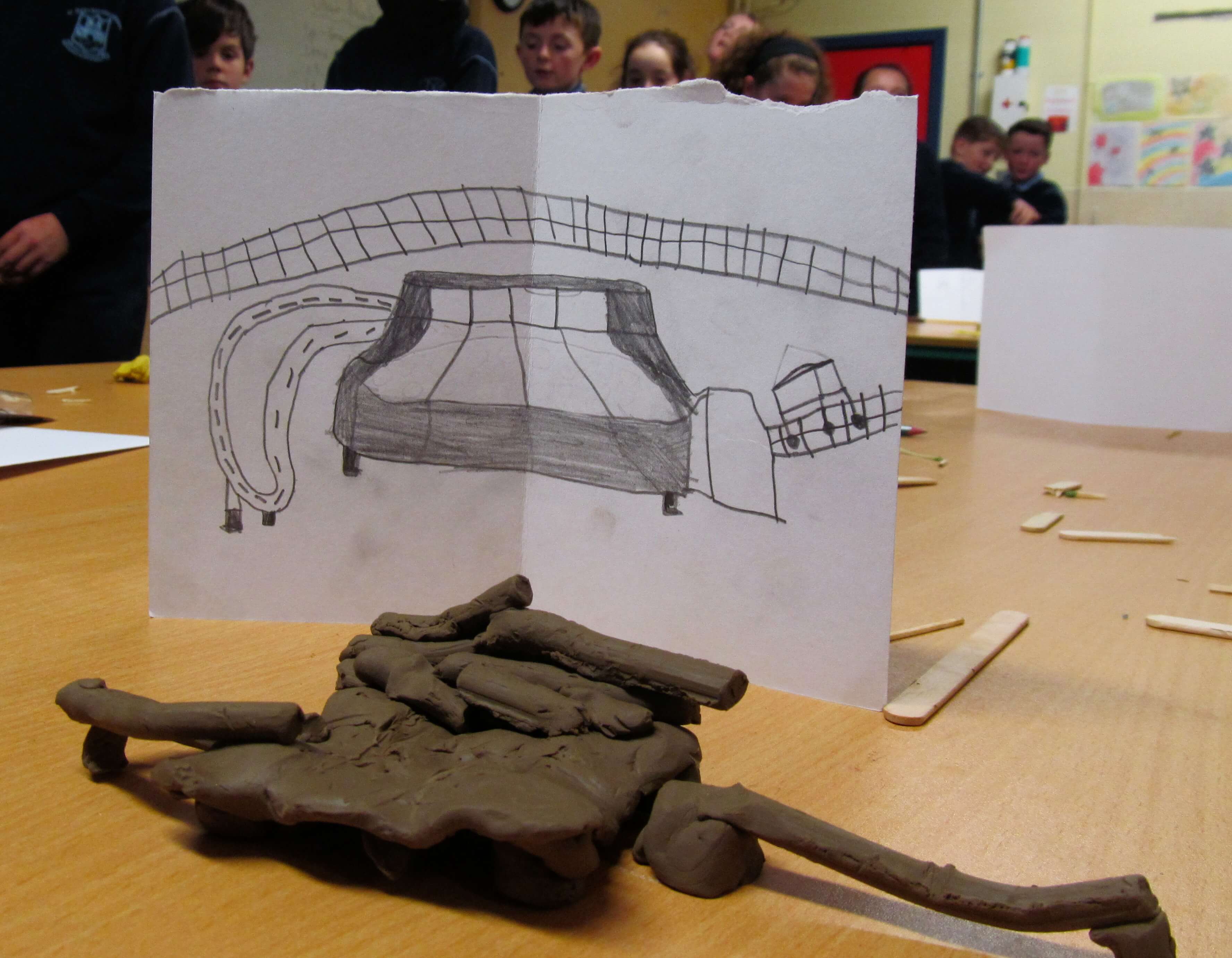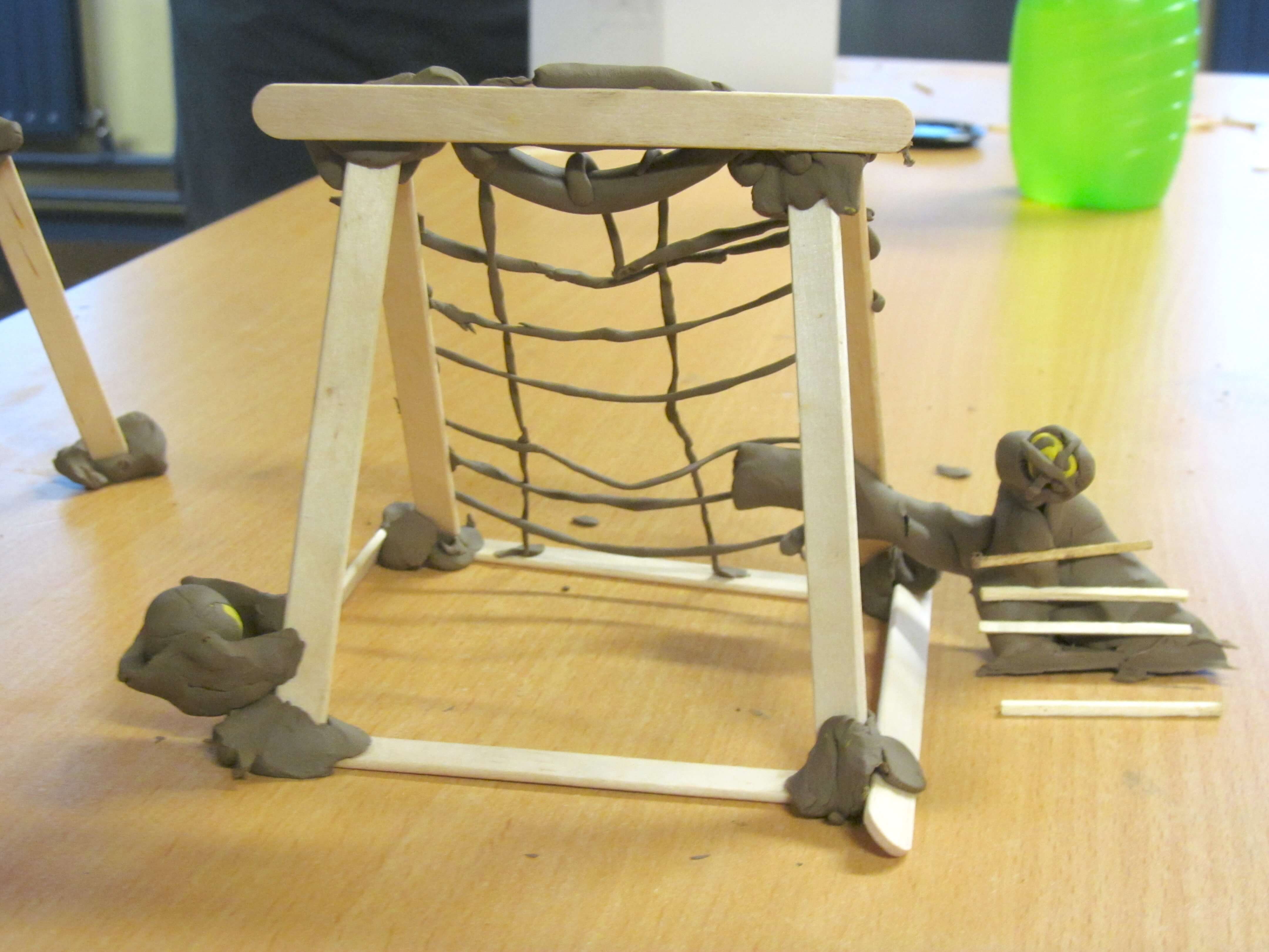 We used simple materials: plastiscine, matchsticks and lollipop sticks to focus on the form of the sculptures, trying to represent the integrity of the drawings and the fantastic forms.