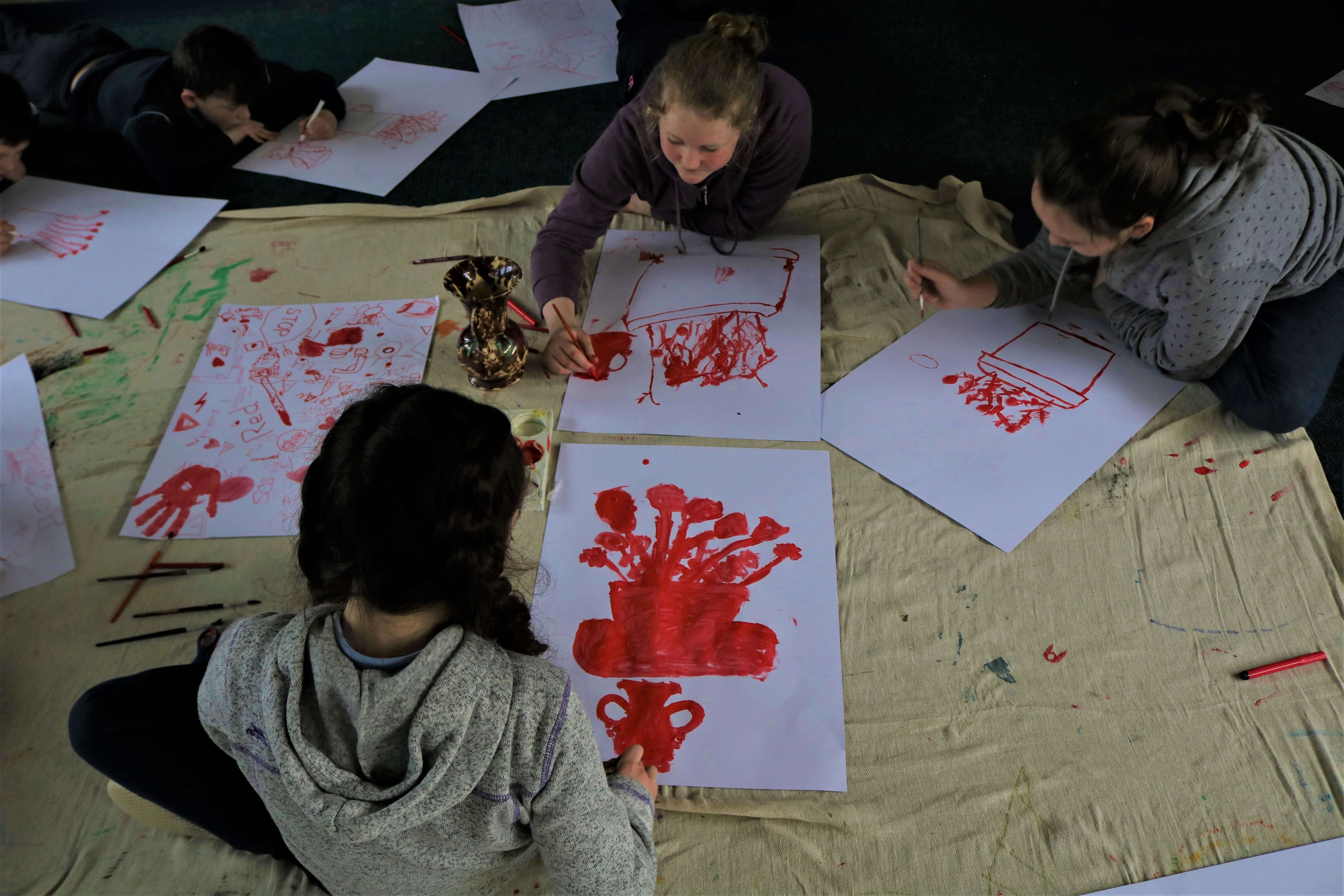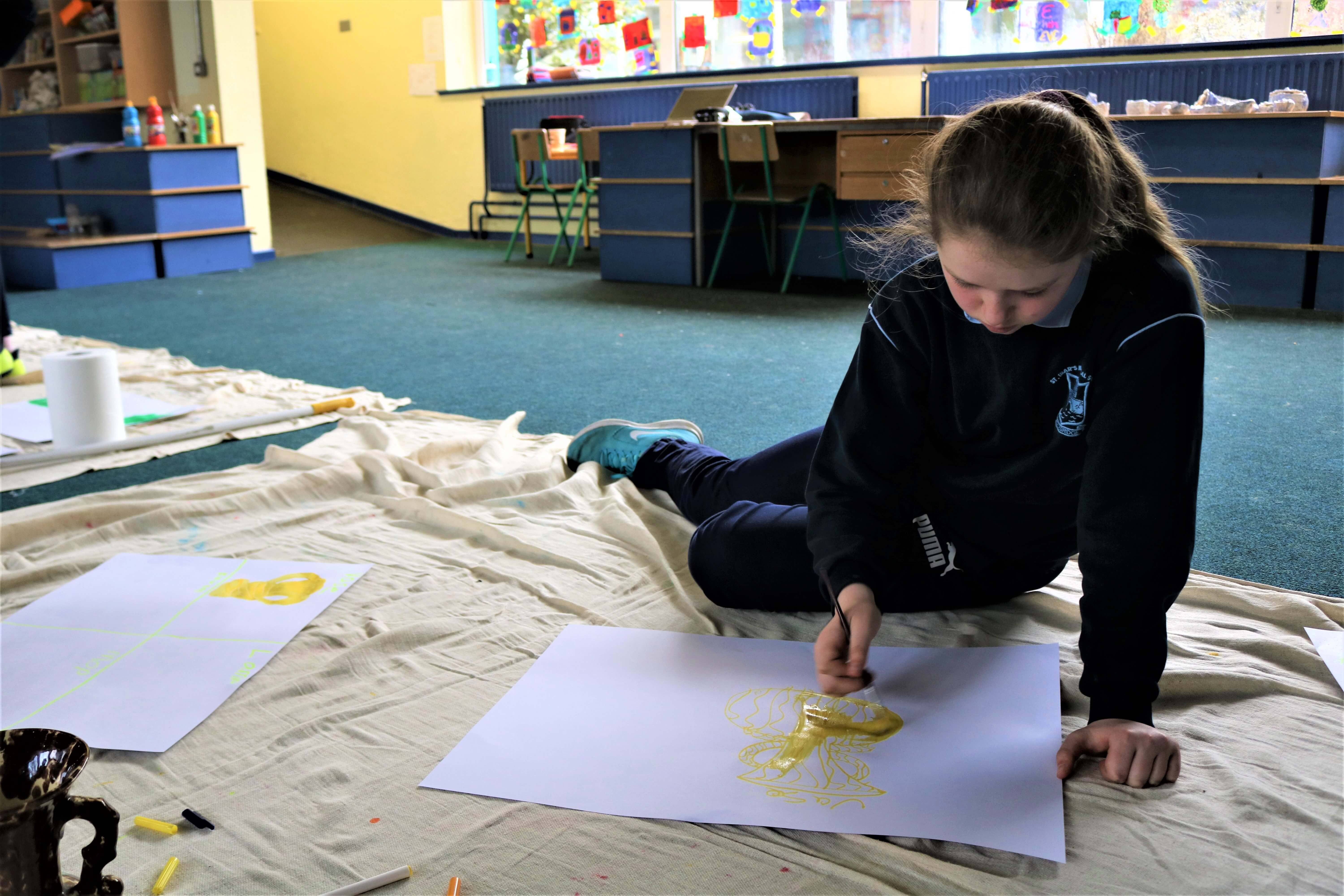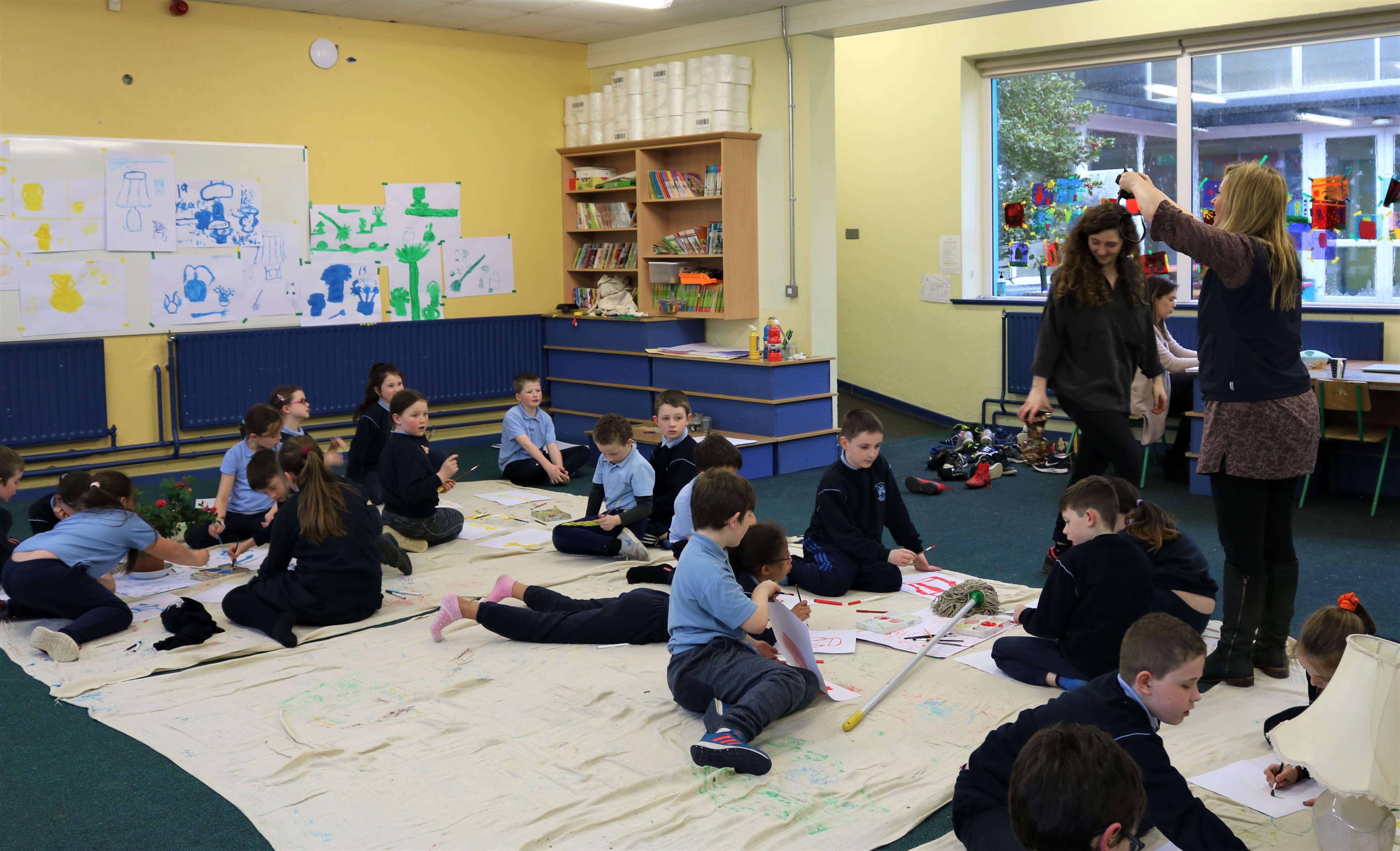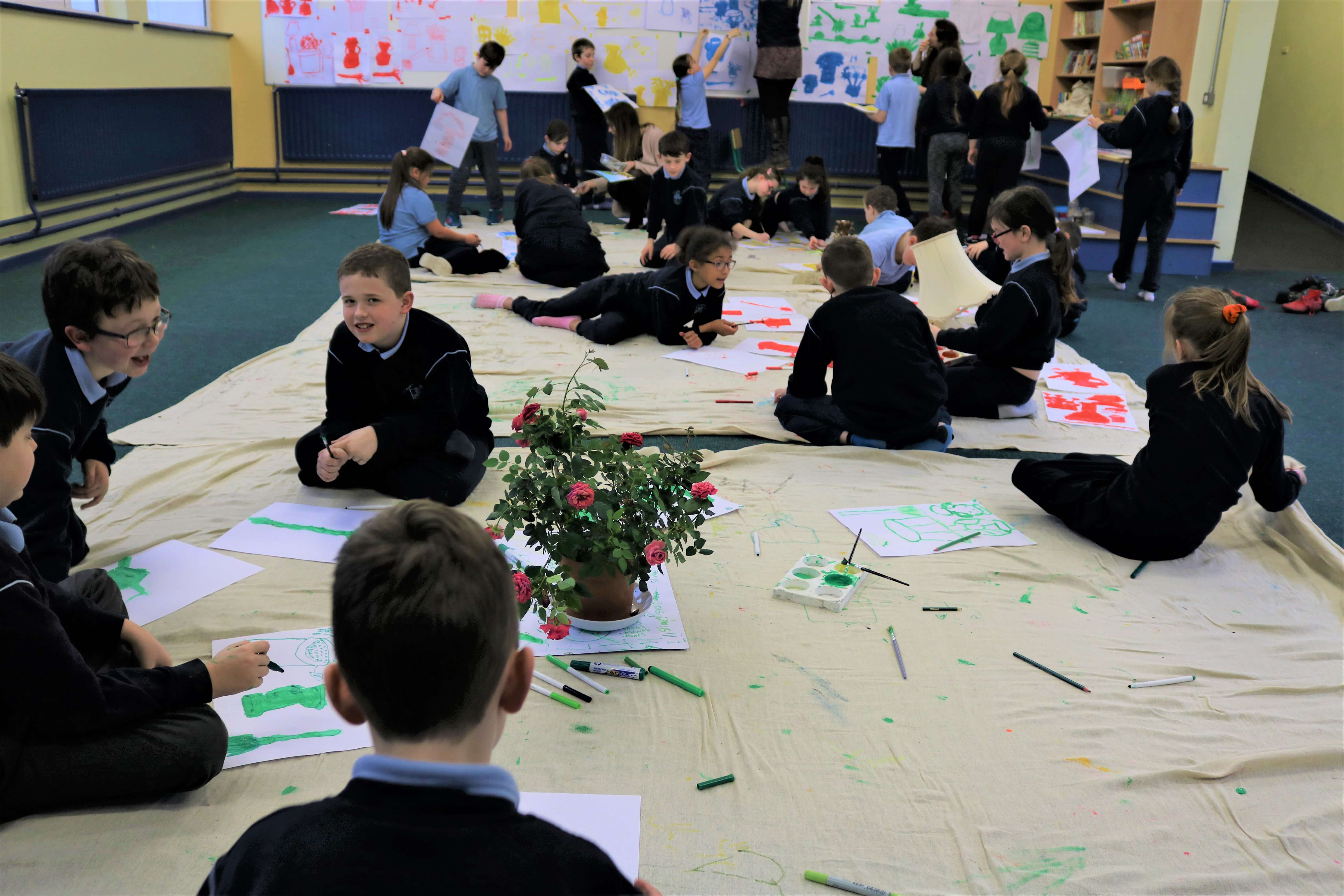 The class began by looking, thinking and talking about Hannah's work. They talked about colour and associations what do certain colours mean to each of us? What do they remind us of, how do they effect us, do they trigger different emotions?