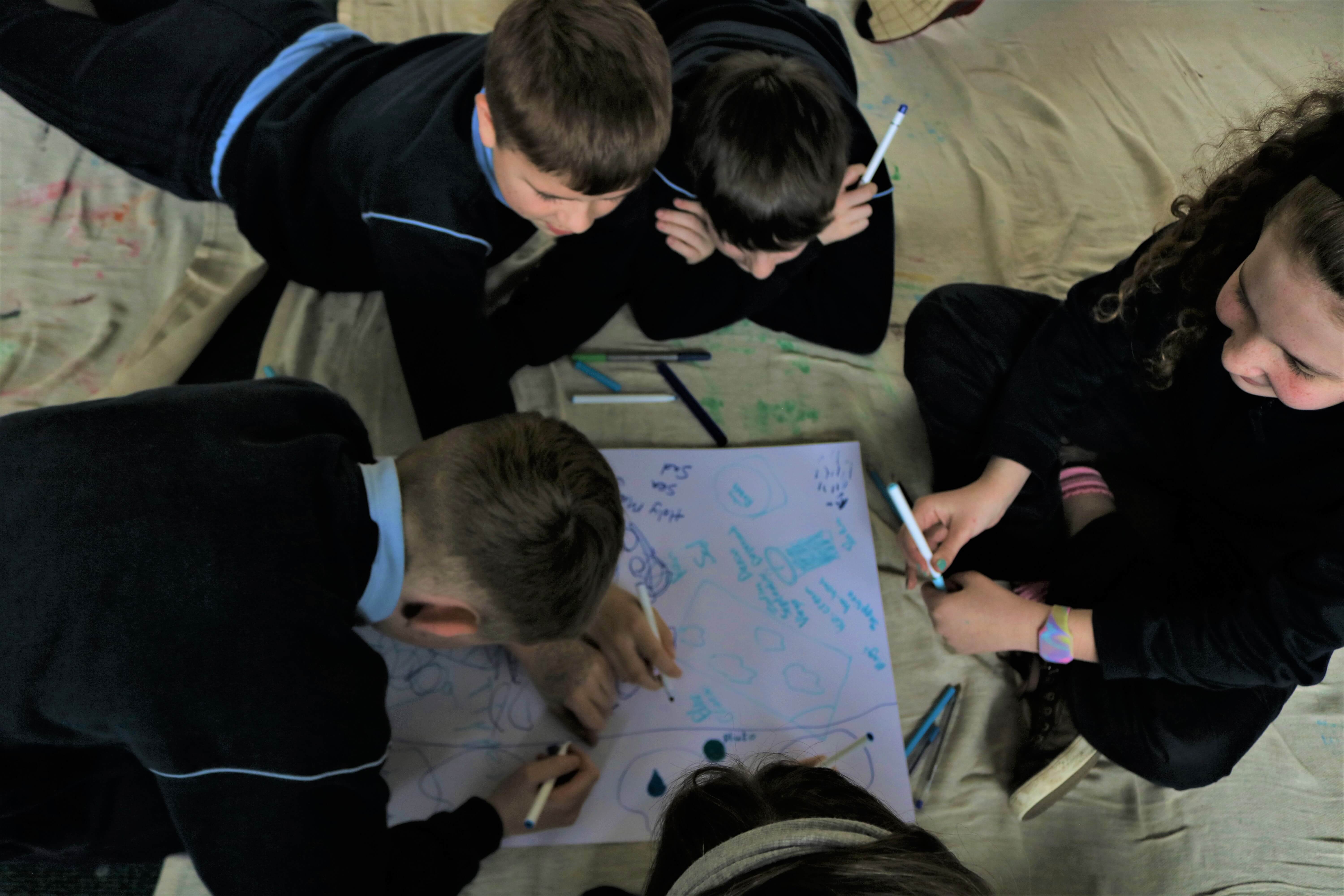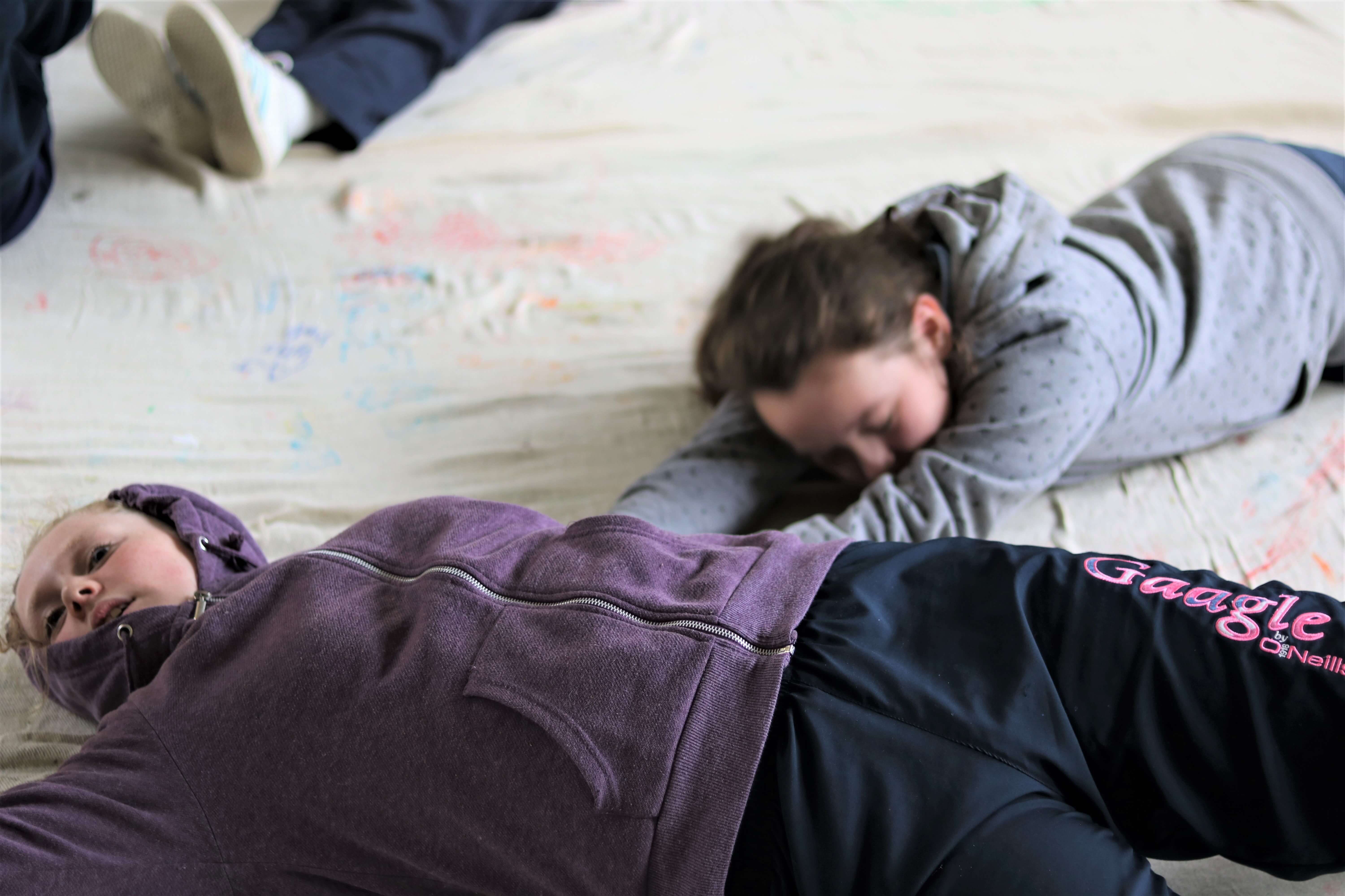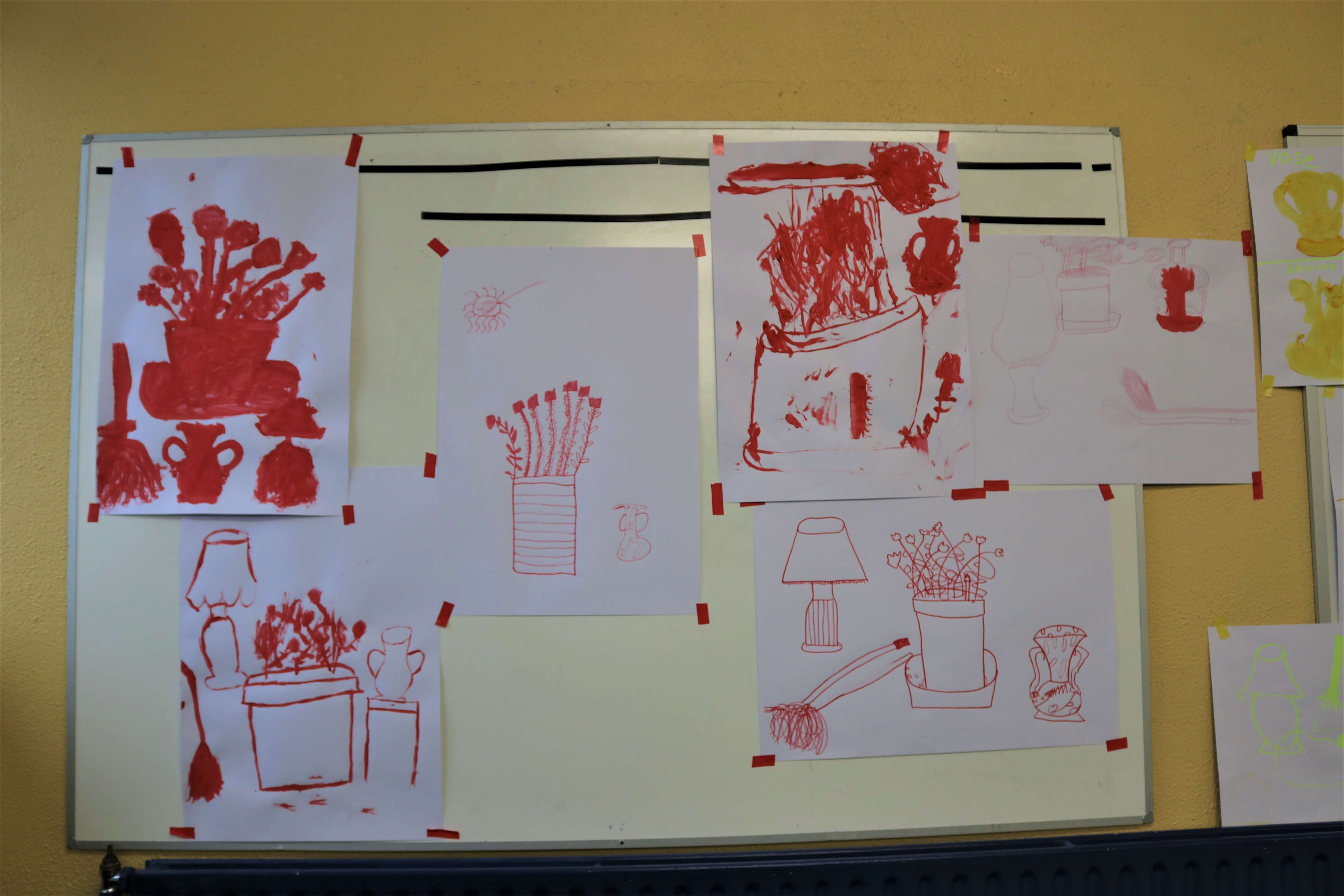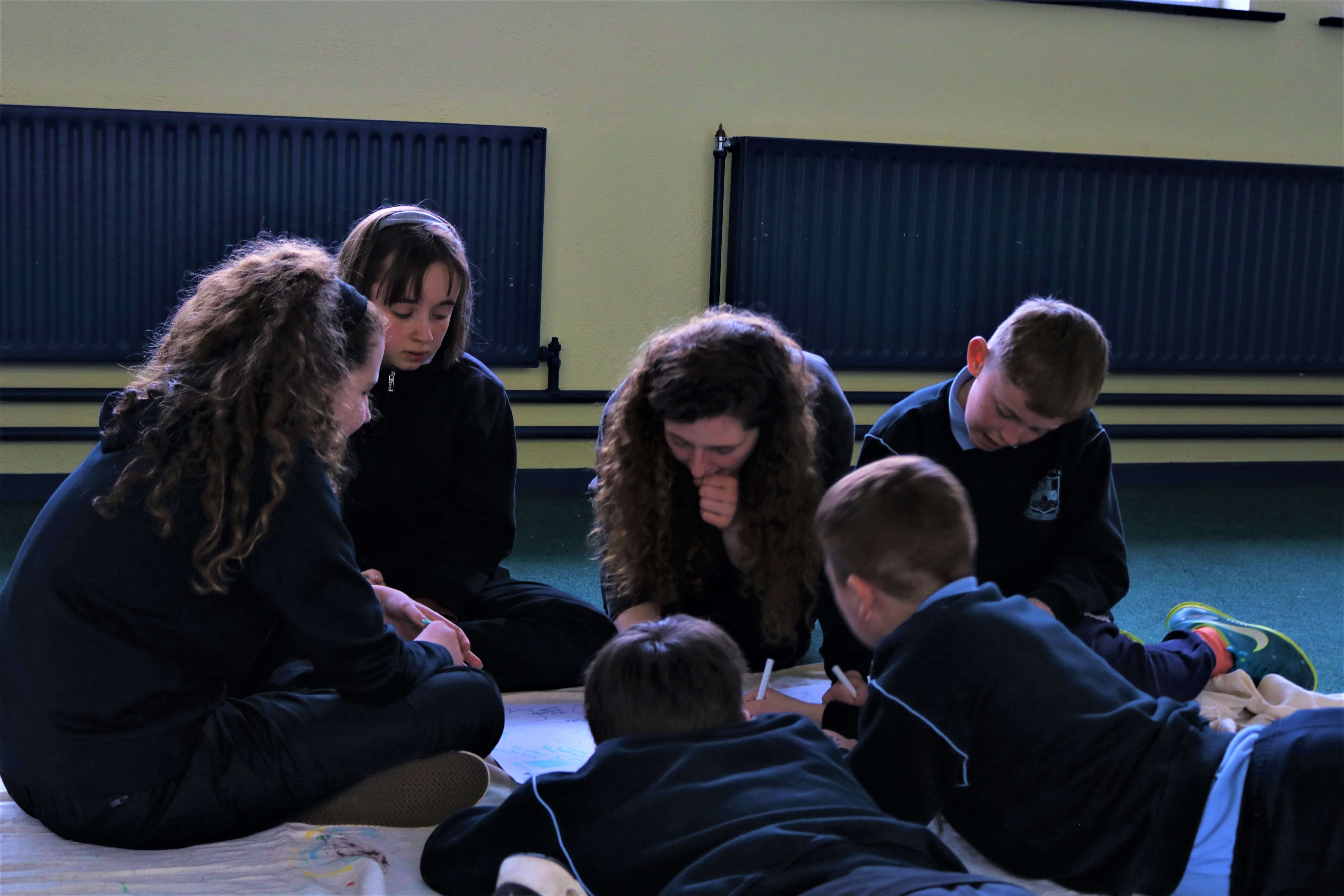The class began by looking, thinking and talking about Hannah's work. They talked about colour and associations what do certain colours mean to each of us? What do they remind us of, how do they effect us, do they trigger different emotions?