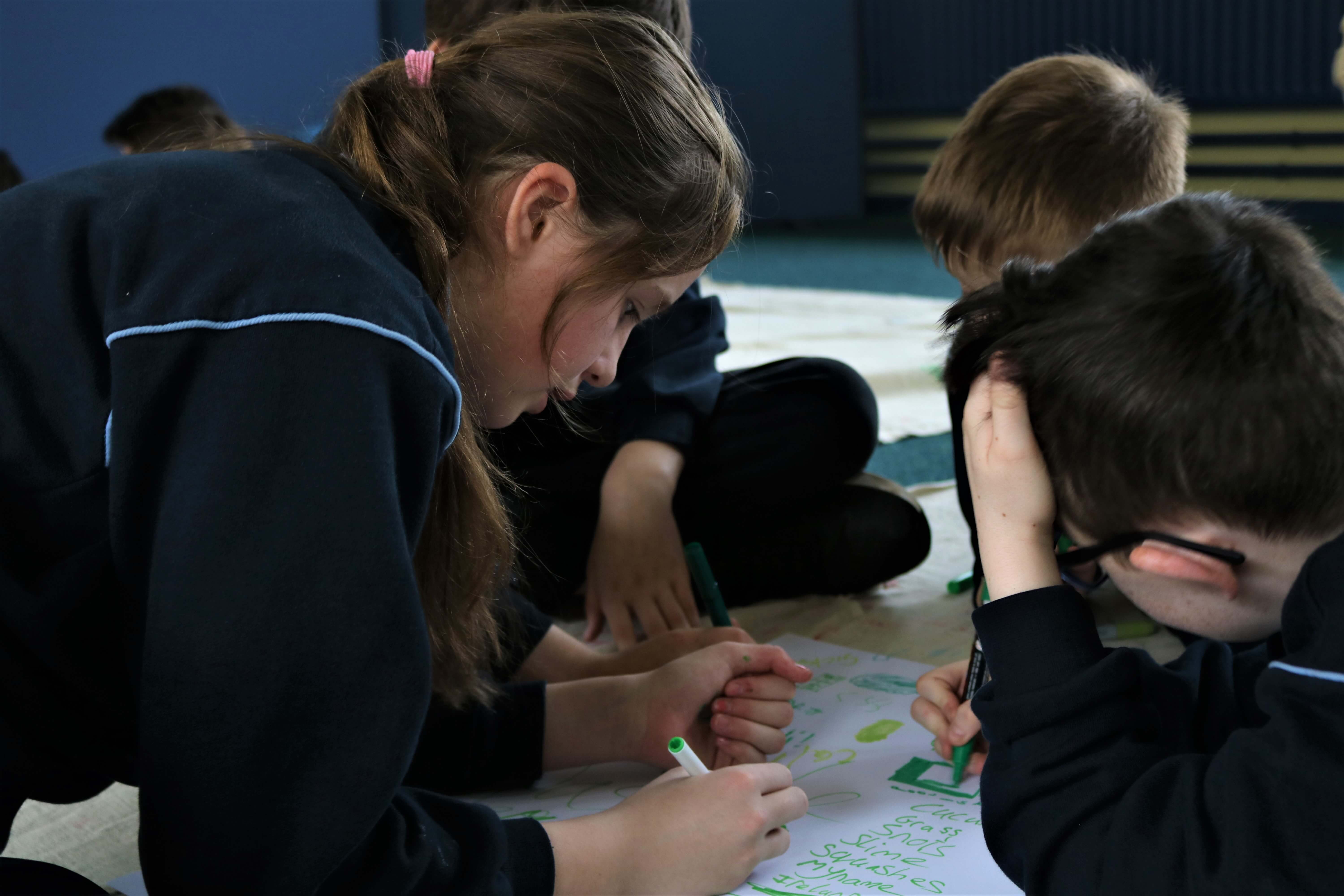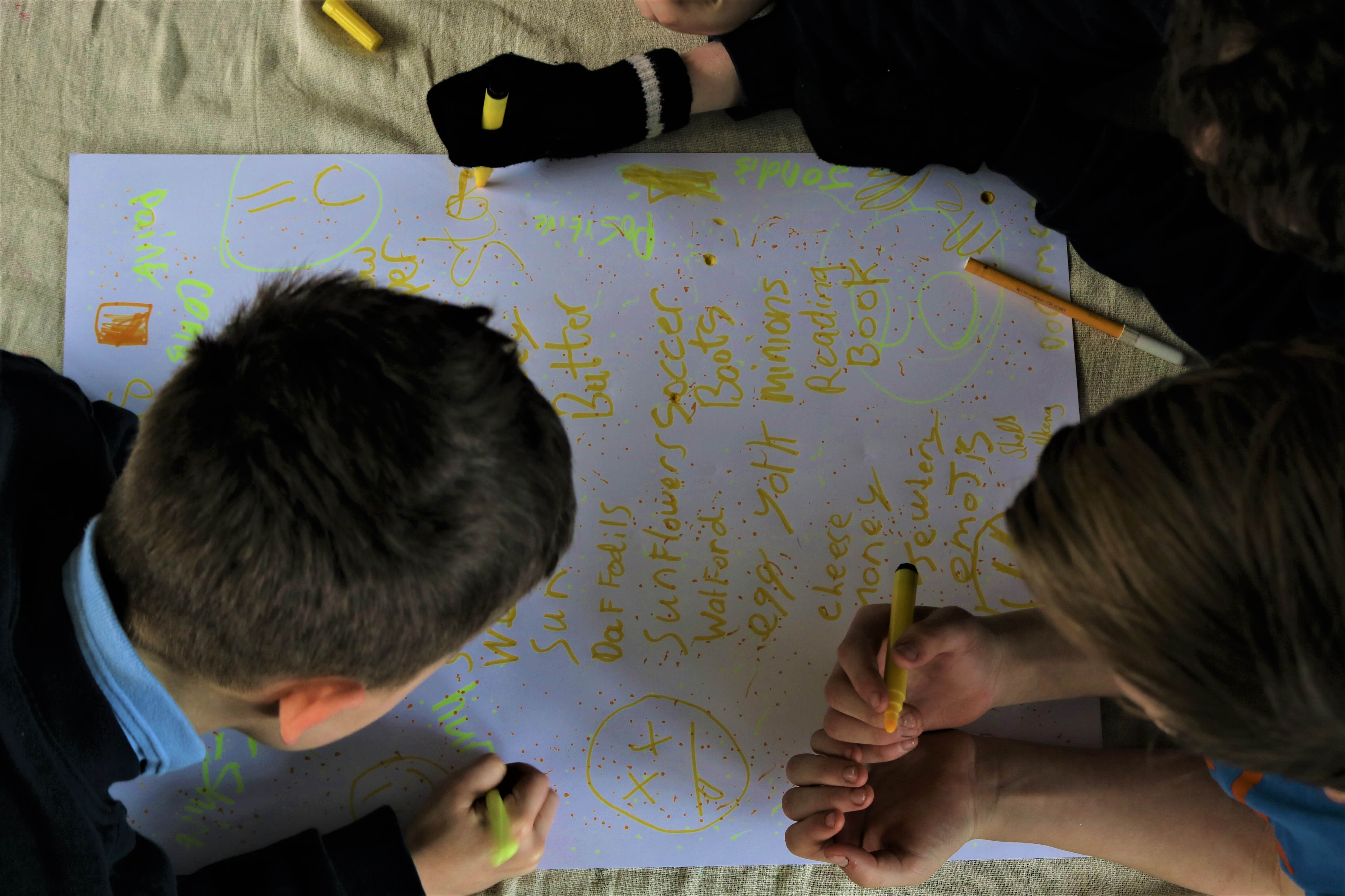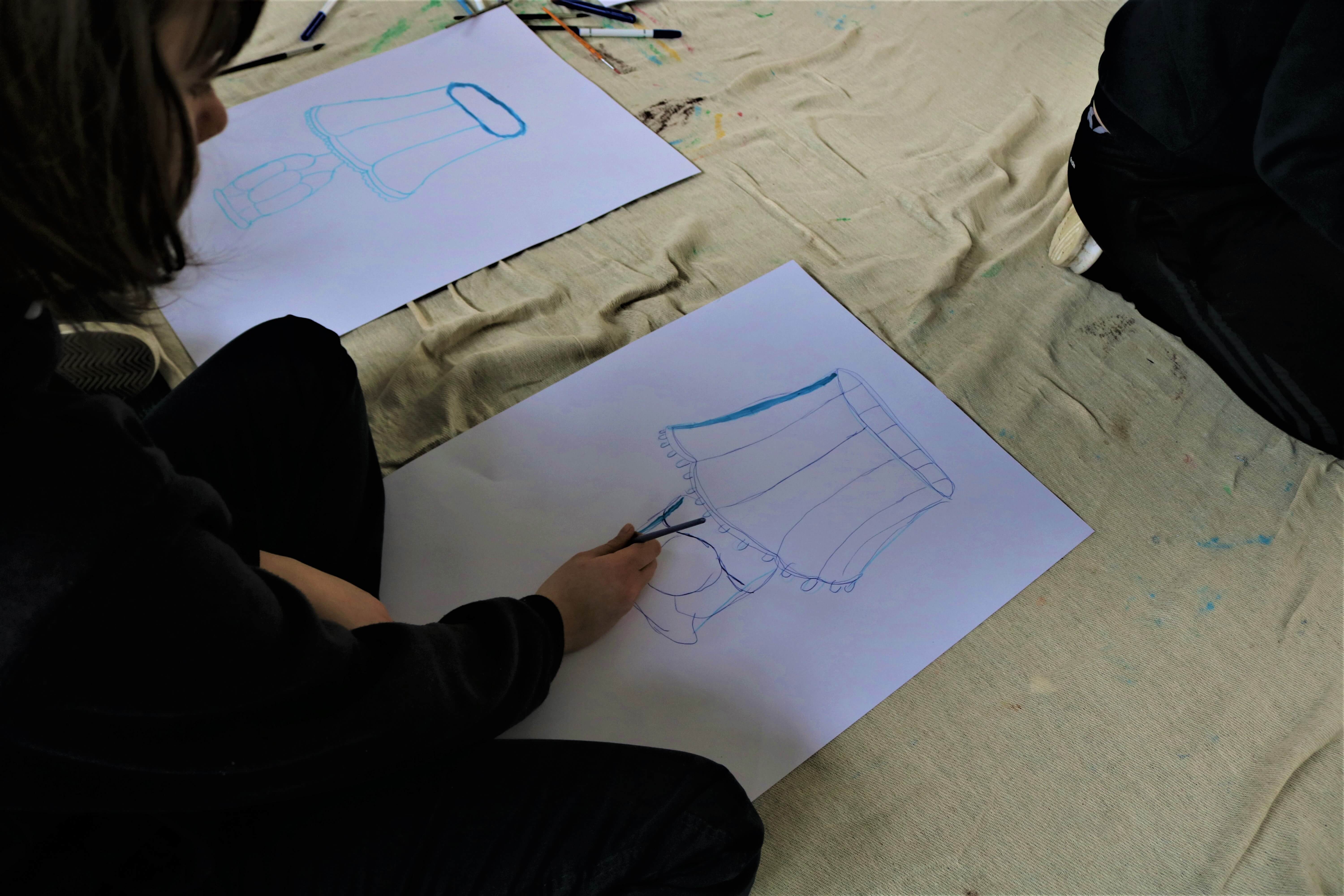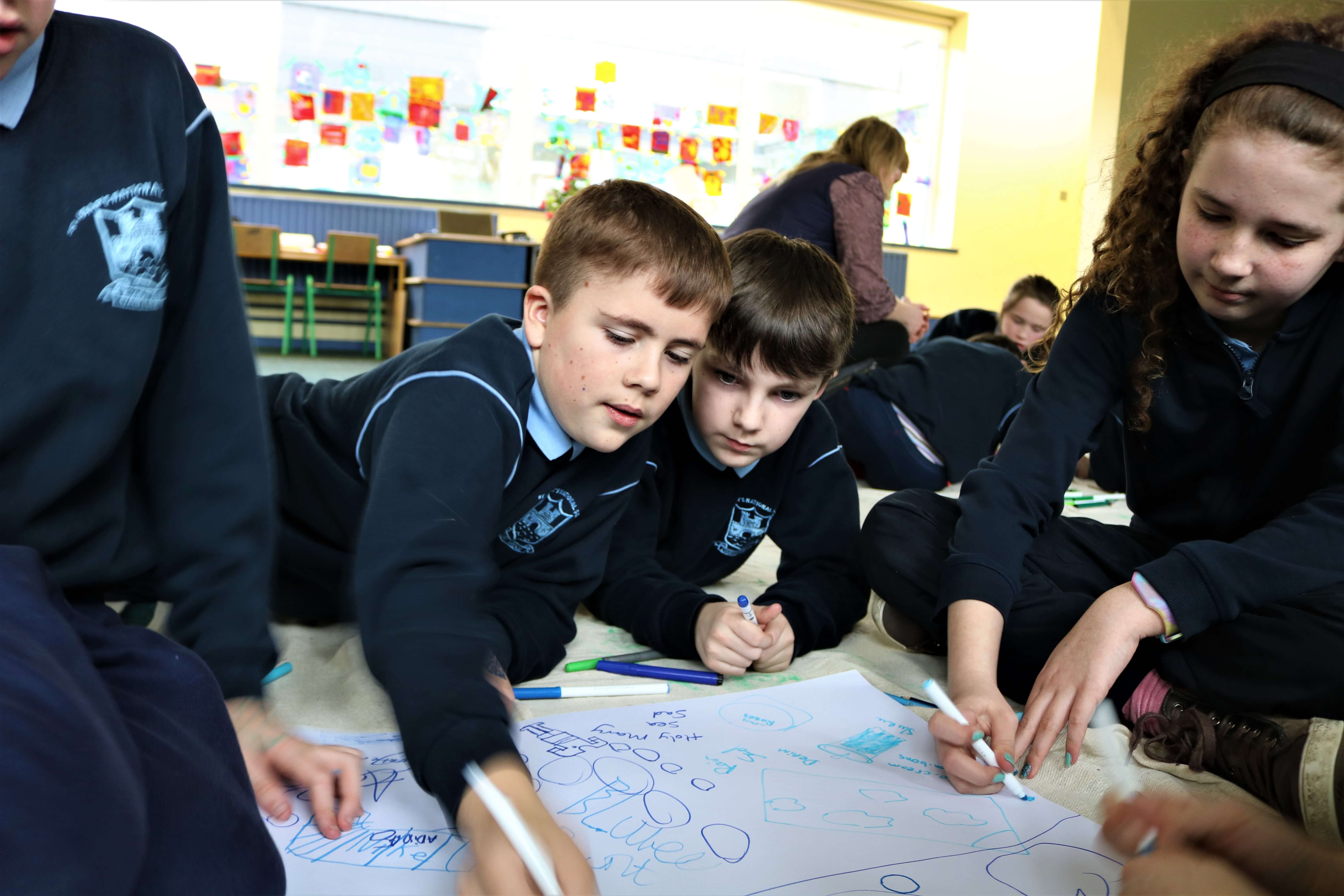 The class began by looking, thinking and talking about Hannah's work. They talked about colour and associations what do certain colours mean to each of us? What do they remind us of, how do they effect us, do they trigger different emotions?