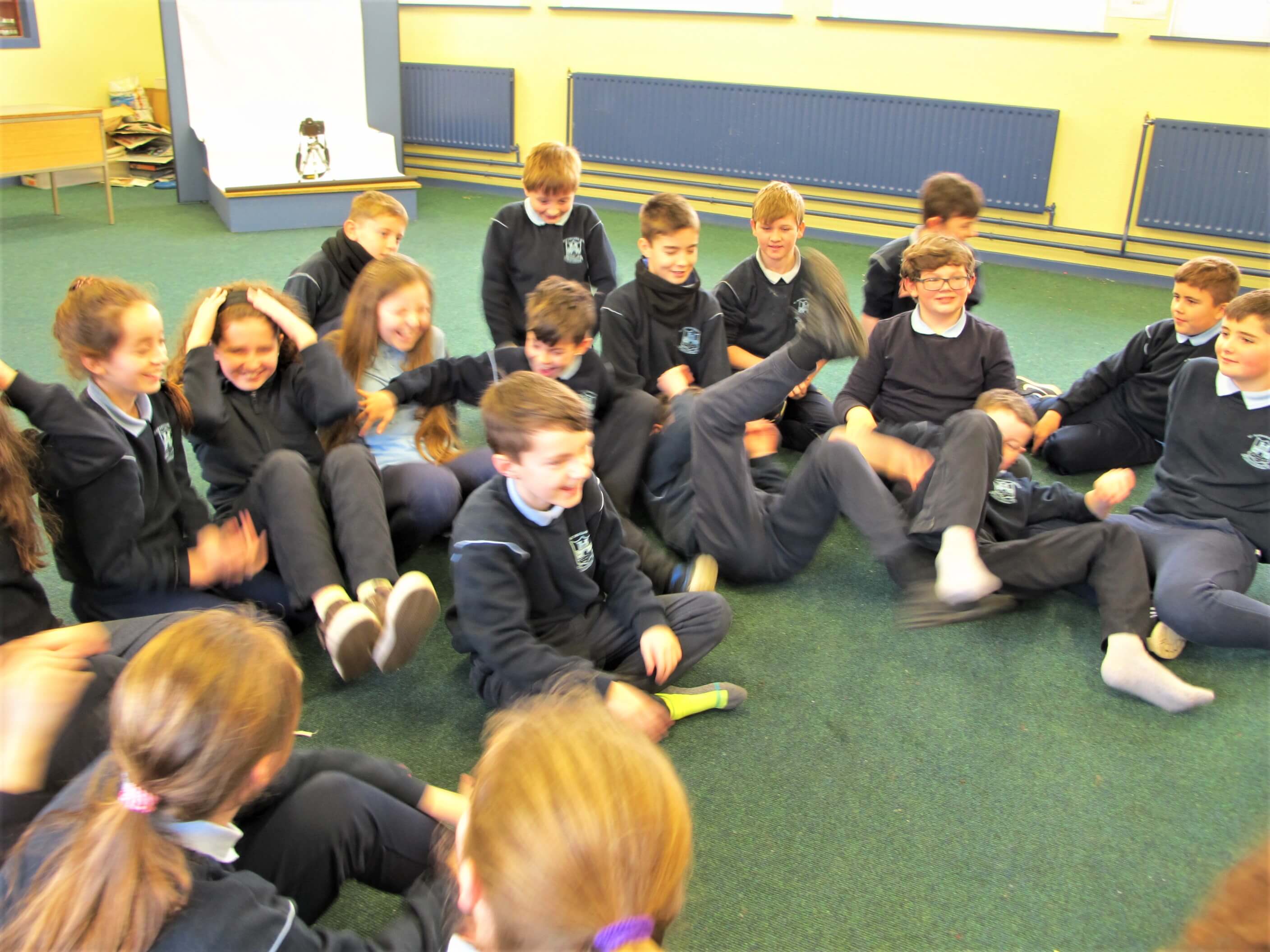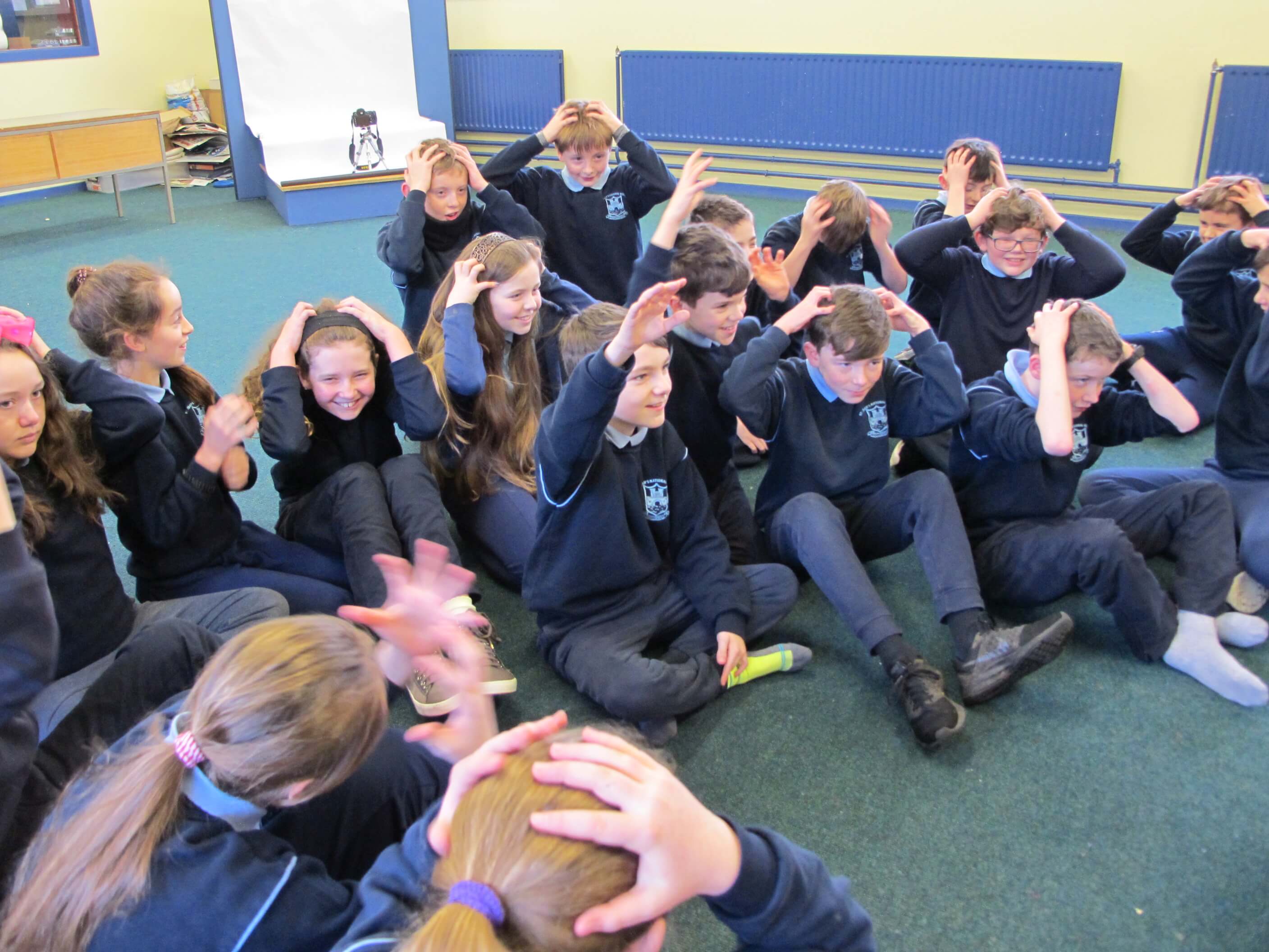 This week Kari came to visit the school. We began with some exercises to warm up our bodies and our brains: Walking around the room slowly....then walking like you are a crab....or a dog.....like you have an extra leg...... or you have no bones..... like you are an octopus.... or a slug..... like your feet are made of magnets.... or you are verrrry verrrrry old.