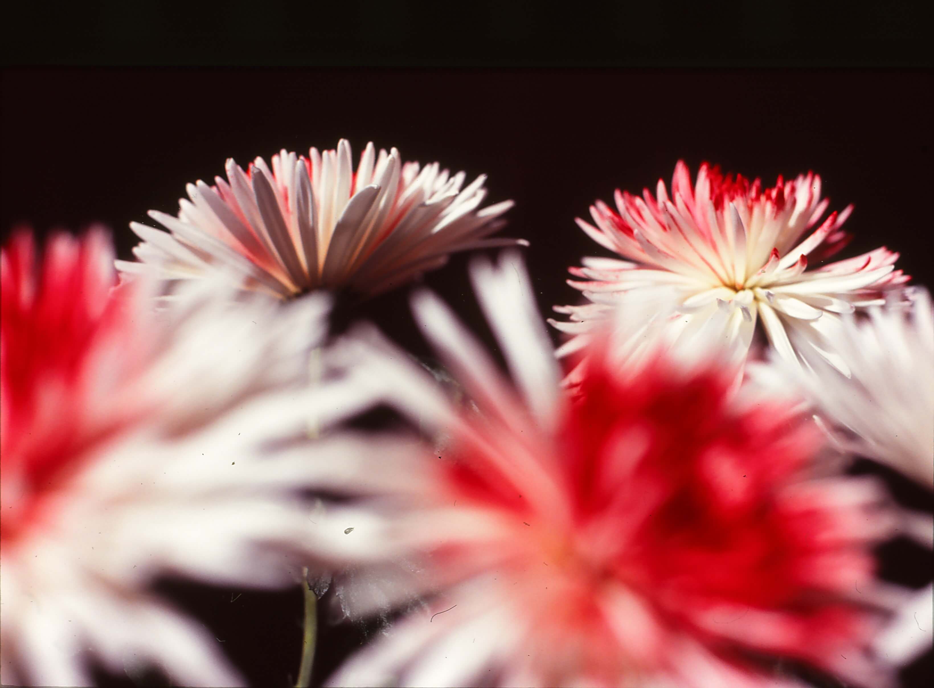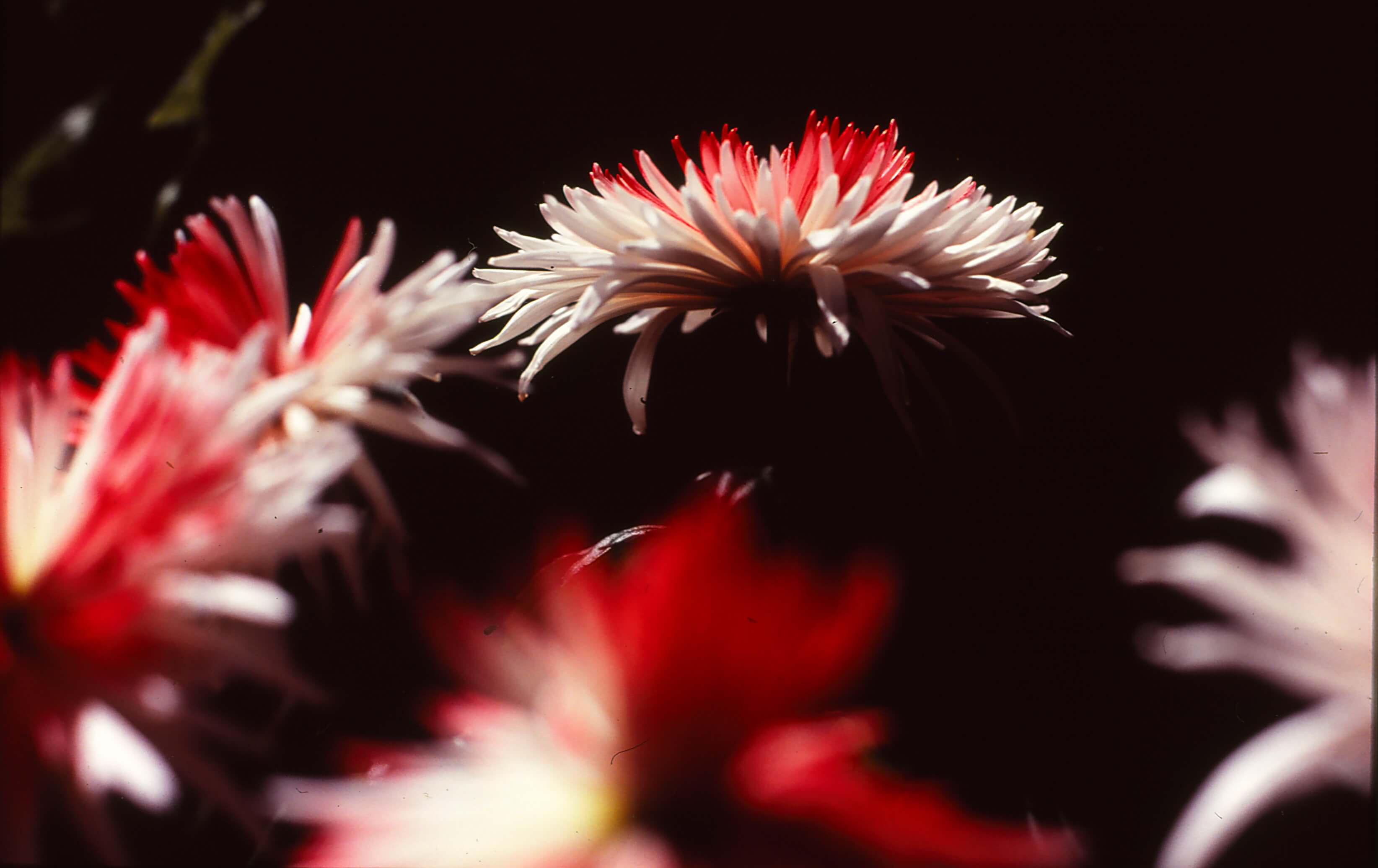 Yannis gave Sarah some chrysanthemums one day and she began taking pictures of them. Each day the light was different and so the picture was different, she used the camera to capture all of these tiny differences, to show all of the beautiful, small changes the angles and the light made to them. Sarah sometimes thinks of a photograph as a kind of “instant painting”.