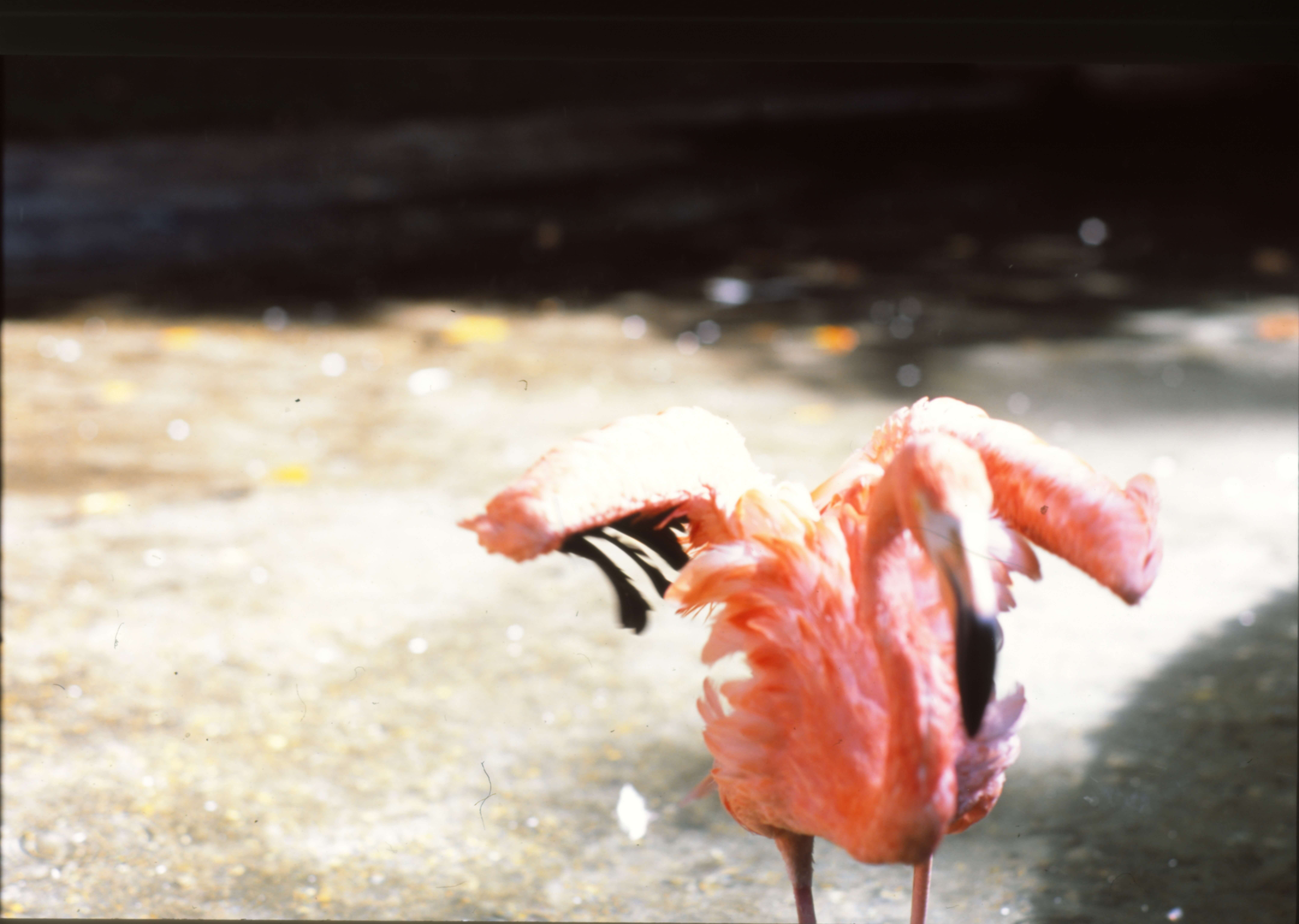 This played a trick on visitor's eyes, and they adjusted to try to take in more red colour. In the last room of the exhibition were photographs of flamingos. Everyone's eyes had adjusted to the green and so these flamingos were even brighter, brilliant pinks and reds!