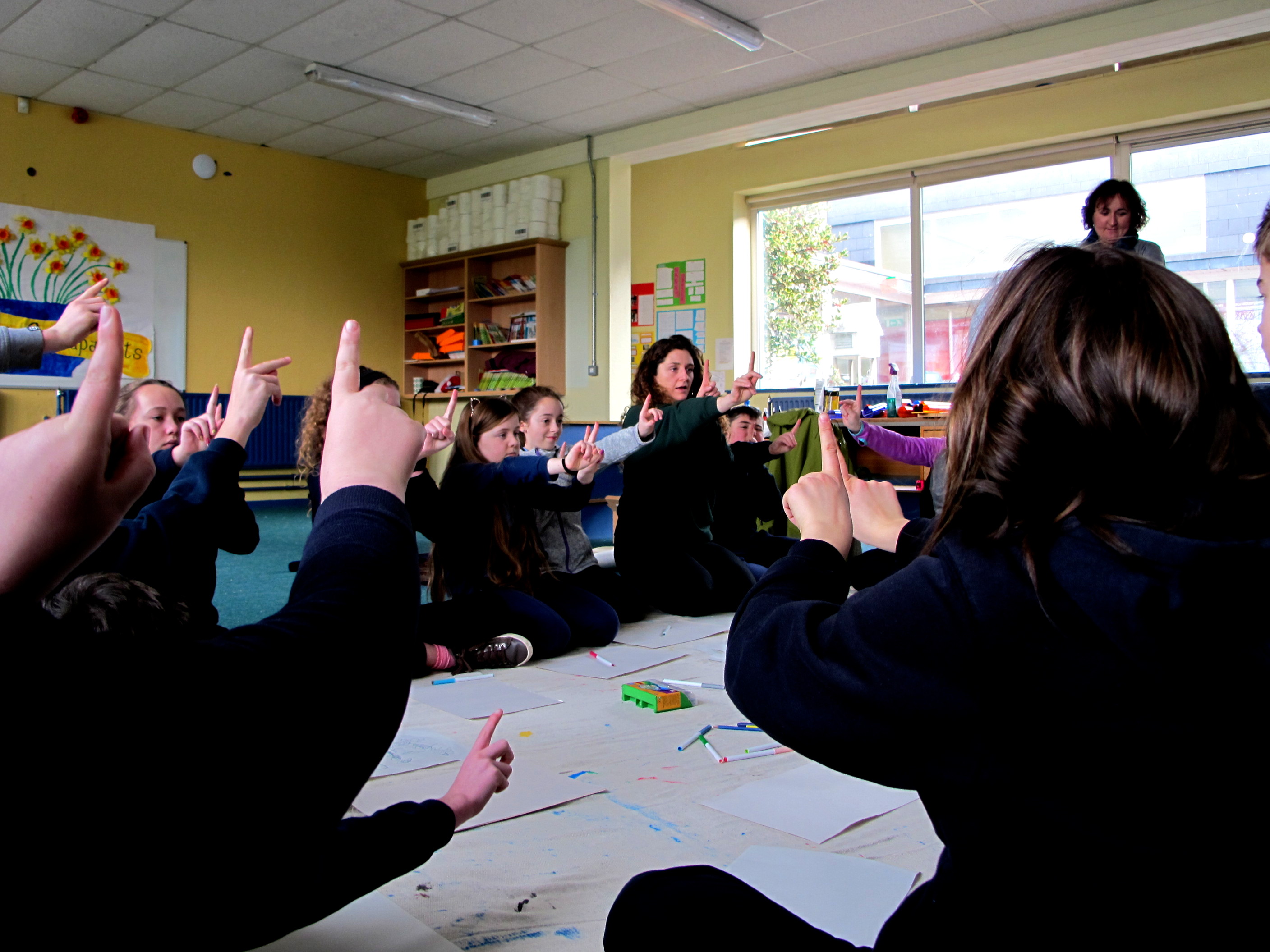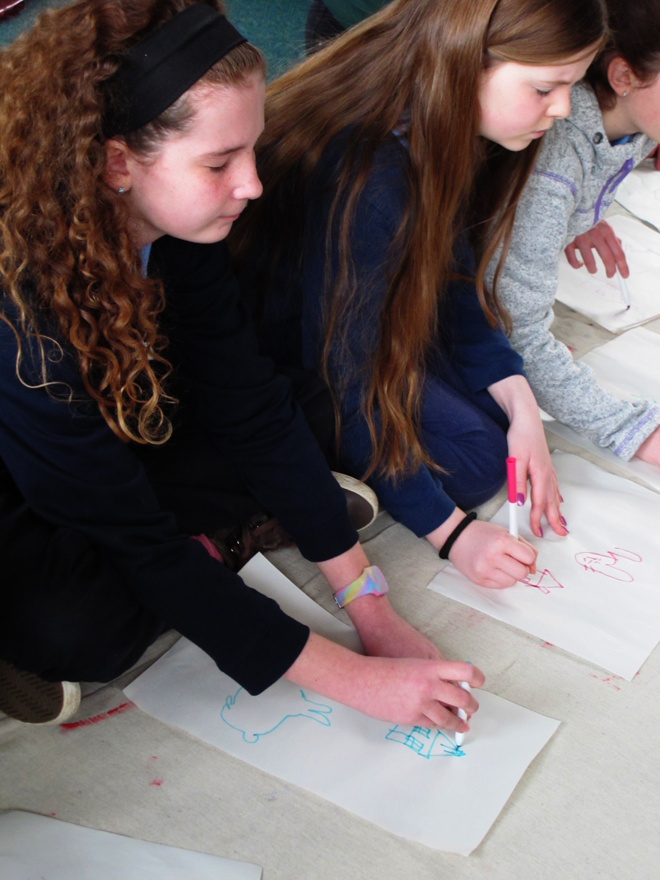 The class tried some exercises Sarah had suggested to help them understand and play with focus, the eyes focuses in the same way a camera does. They played with depth perception, focusing from one finger to the other. This exercise brought an awareness to the mechanics of how the eye looks. They also tried some blind drawing and framing exercises.