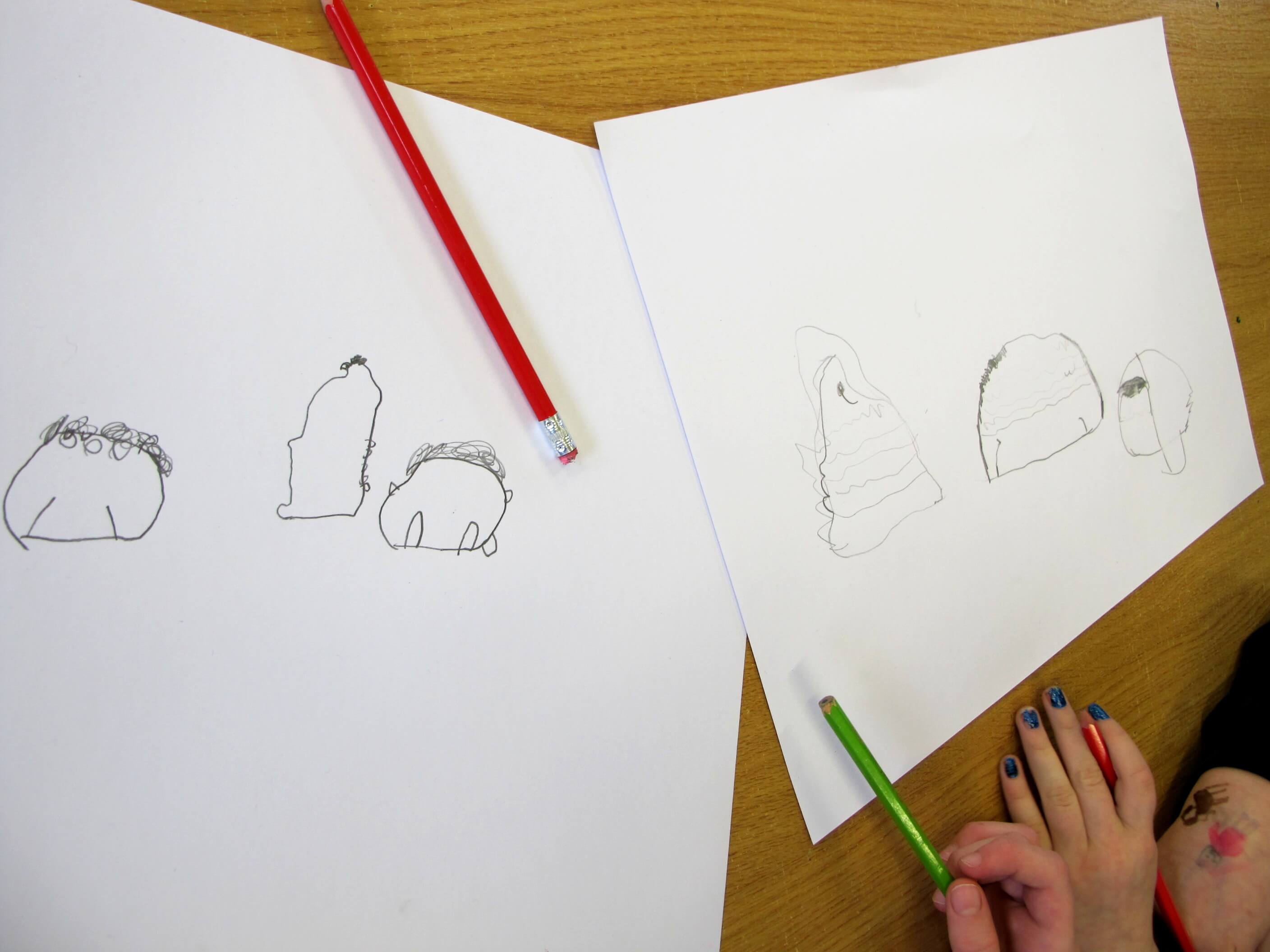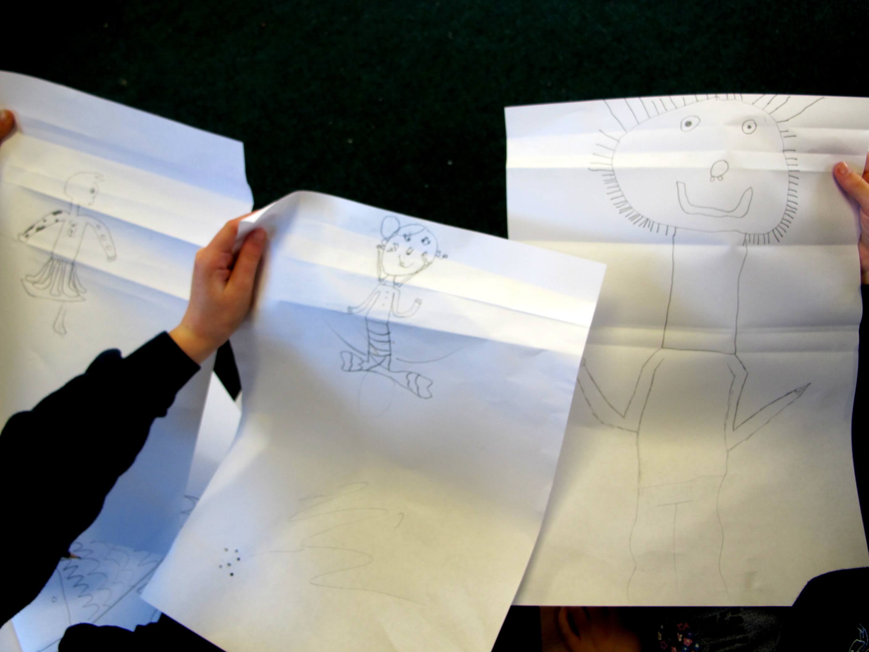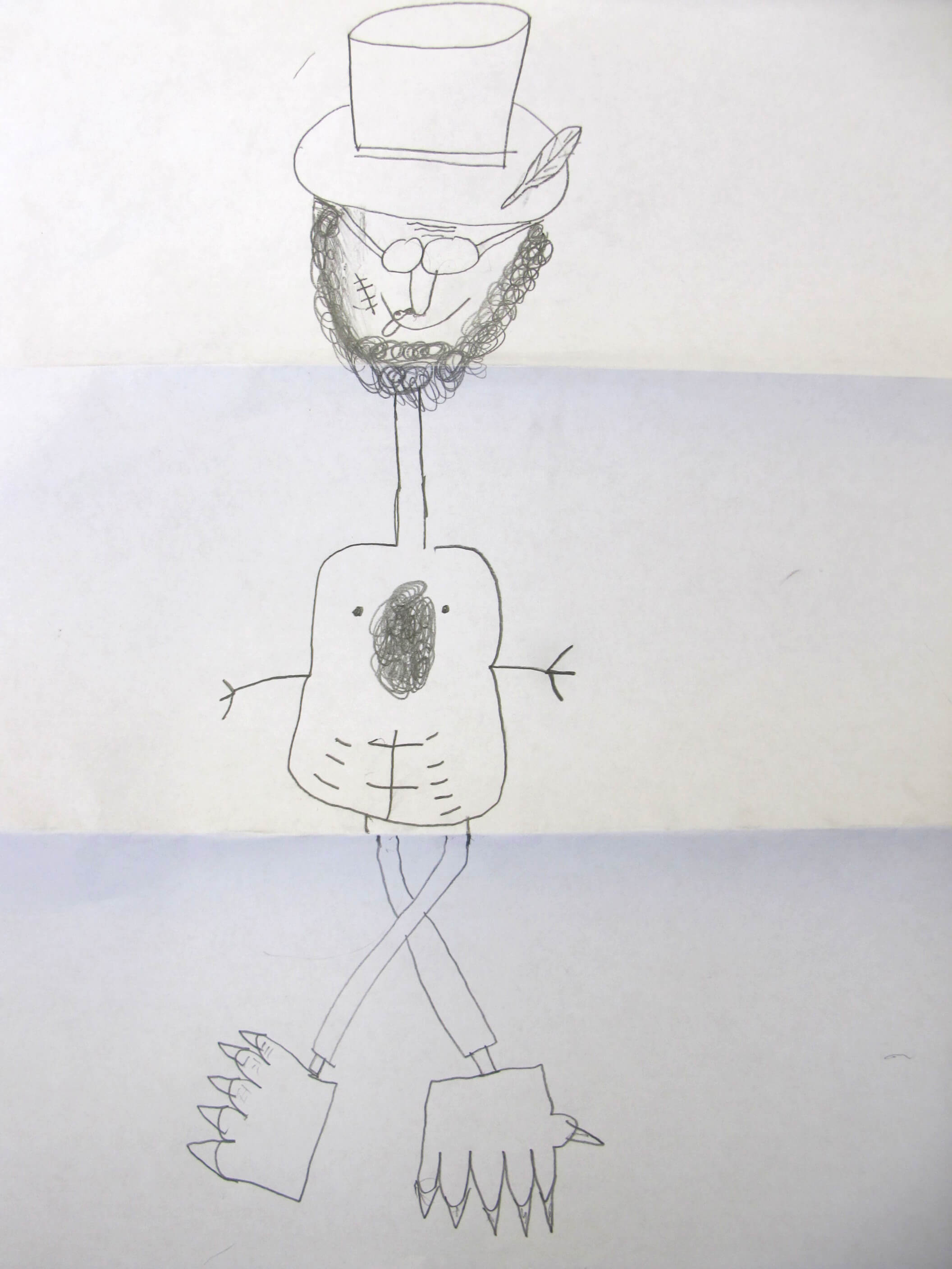 We moved to the hall and we loosened up for our day of drawing with an old game called exquisite corpse.