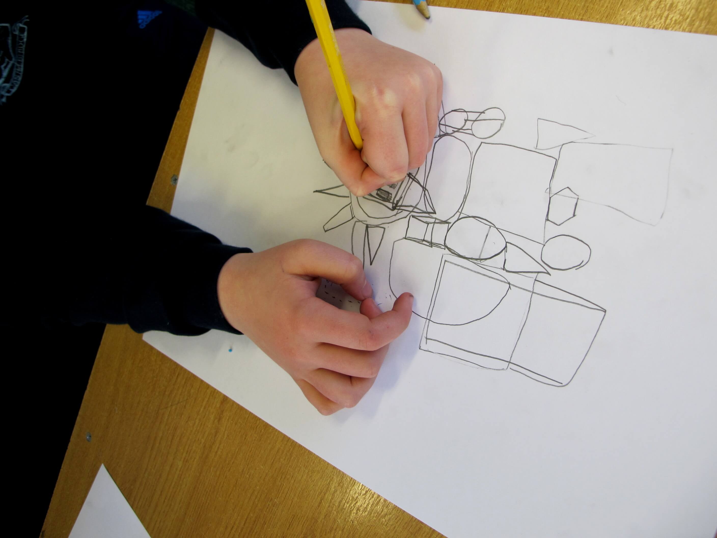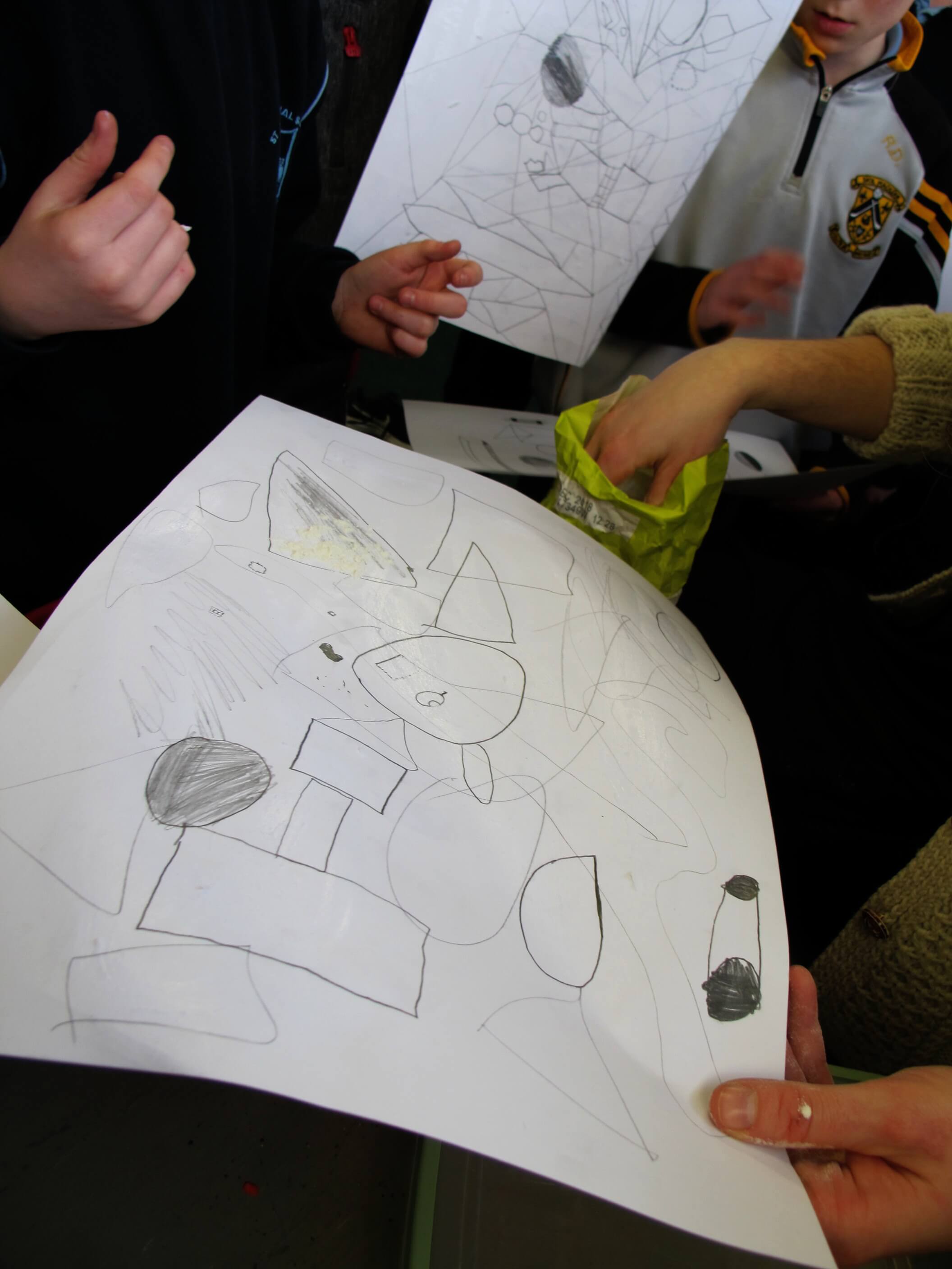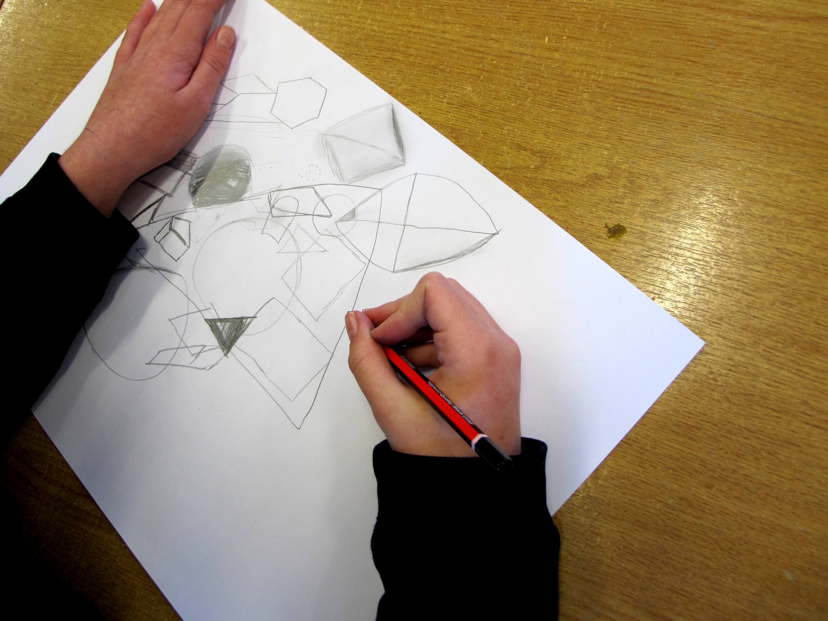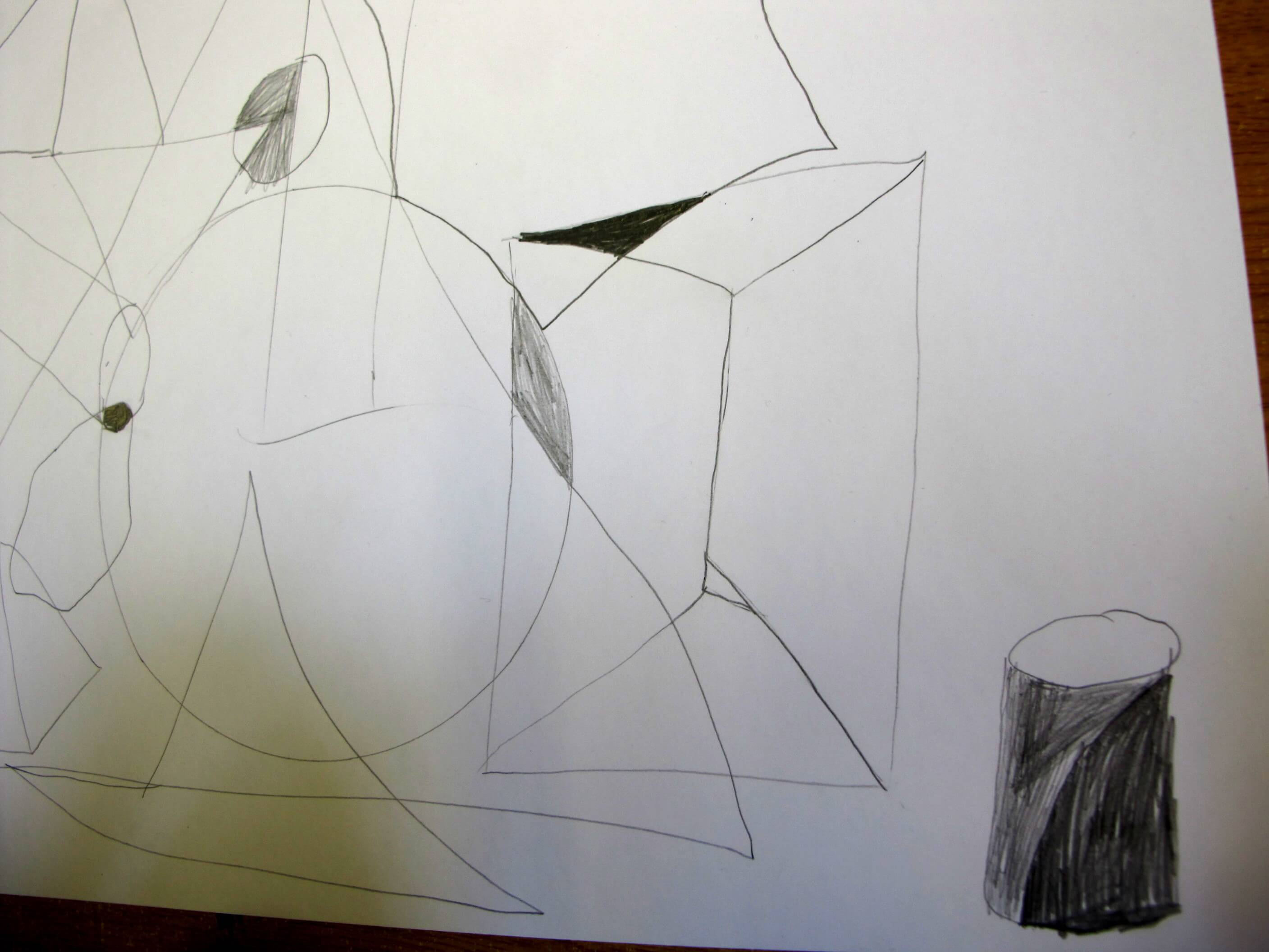 Then we began a drawing with geometry, thinking and listening quietly to the instructions and drawing along quietly: