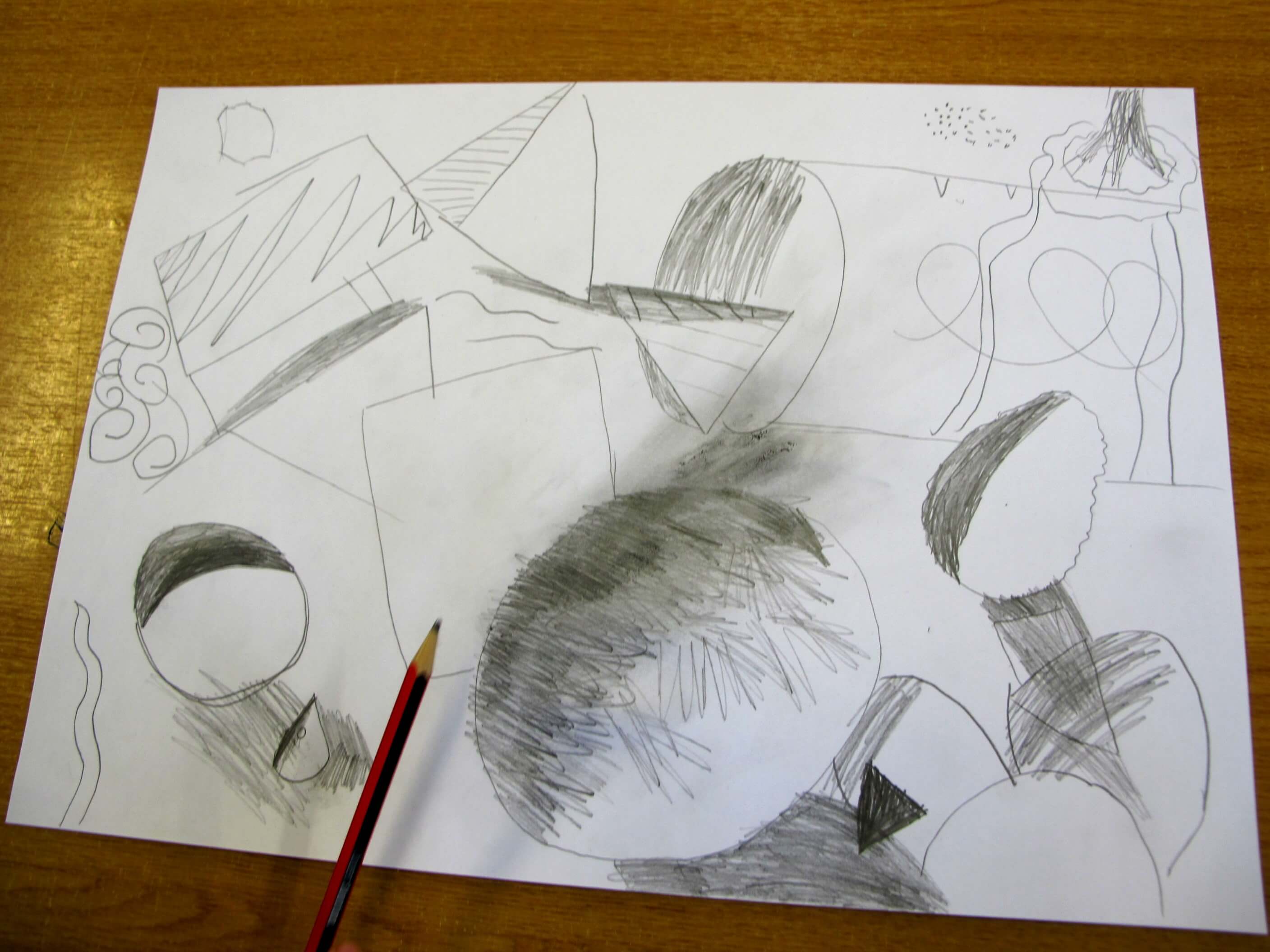 Try to add a happy triangle, a nervous square, a quiet octagon, draw an angry shape, a sad shape, an itchy shape,